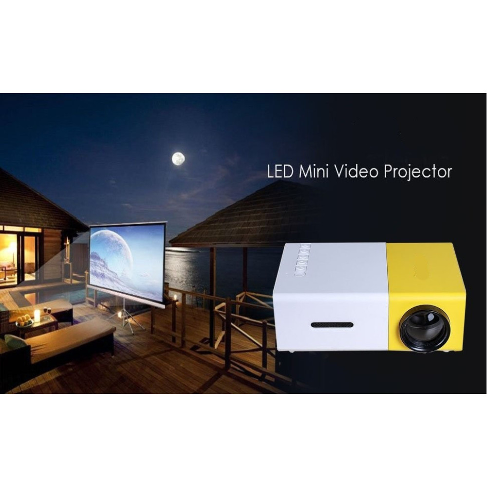 YG-300 — портативный проектор с поддержкой Wi-Fi сети. К проектору можно подключить компьютер, планшет, телефон или приставку с помощью Hdmi или AV кабеля. За счет наличия разъемов он может воспроизводить видео с сети, USB-накопителя, диска или micro-SD карты. В проекторе есть встроенный динамик, мощностью 1 Вт. Несмотря на то, что разрешение матрицы проектора 320 на 240, он поддерживает воспроизведение видео до FullHD.