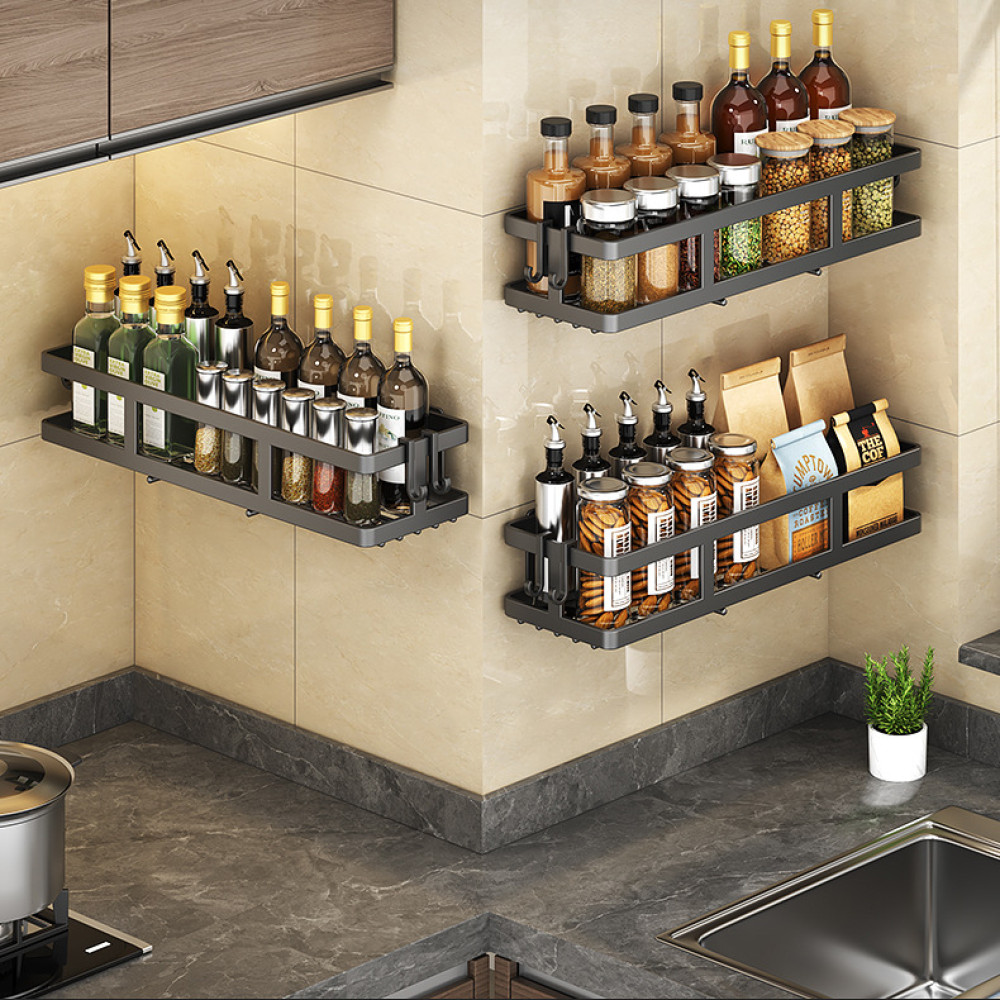 Многофункциональная стойка для приправ · Настенные полки для кухни · Органайзер для ванной комнаты