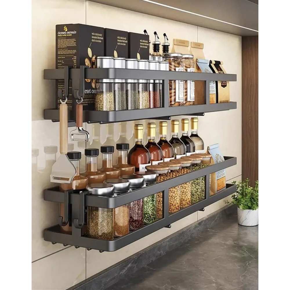 Эта настенная многофункциональная стойка идеально вписывается в современный стиль домашнего декора, эффективно экономя пространство на кухне и в других помещениях.
