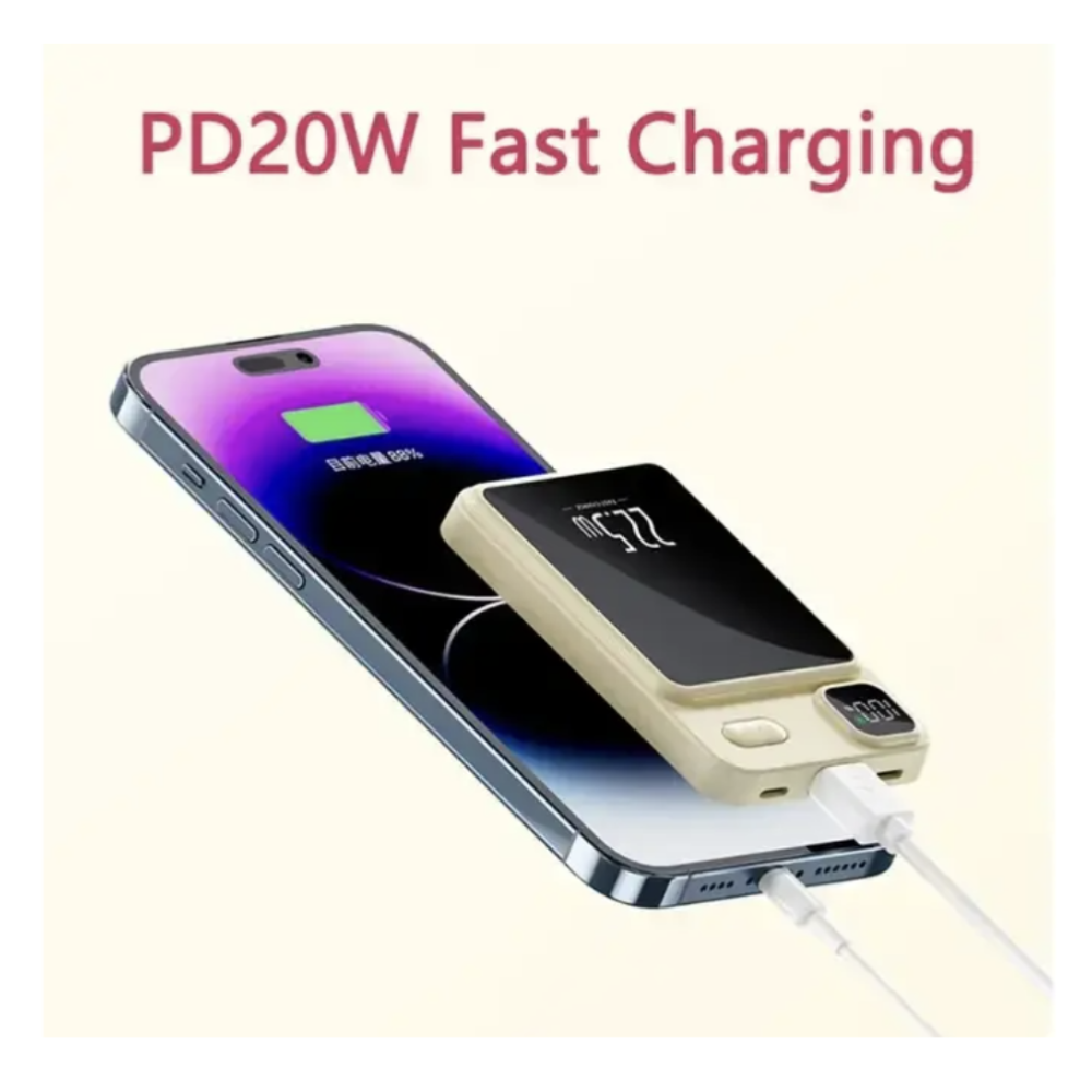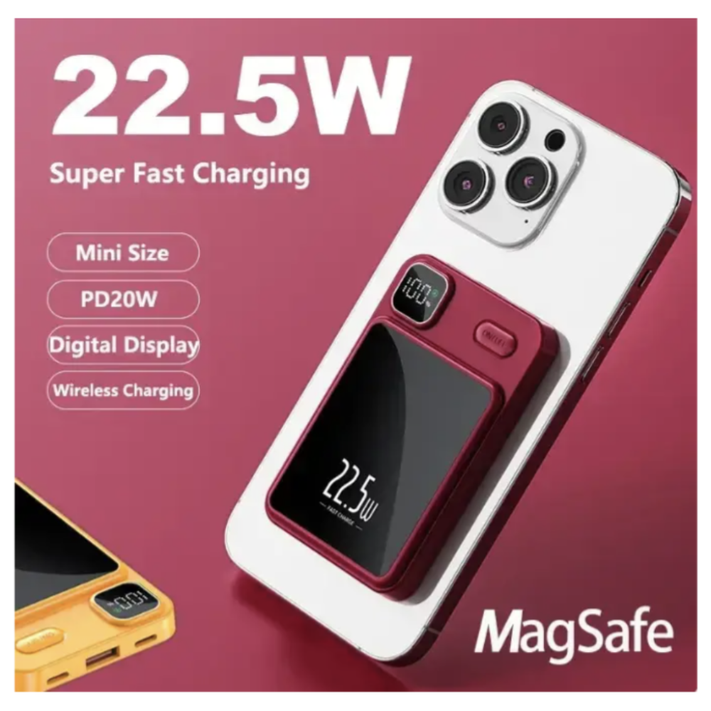 Мобильный павербанк Magnetic Power Bank 90.000mAh 22.5W сочетает в себе высокую ёмкость, компактность и современные функции для удобной зарядки телефонов и аксессуаров. Главным преимуществом является поддержка беспроводной зарядки, которая позволяет быстро и легко зарядить устройство без подключения кабеля. Магнитное крепление обеспечивает надежное фиксирование телефона, а разъем Type-C поддерживает быструю зарядку самого павербанка и подключаемых устройств