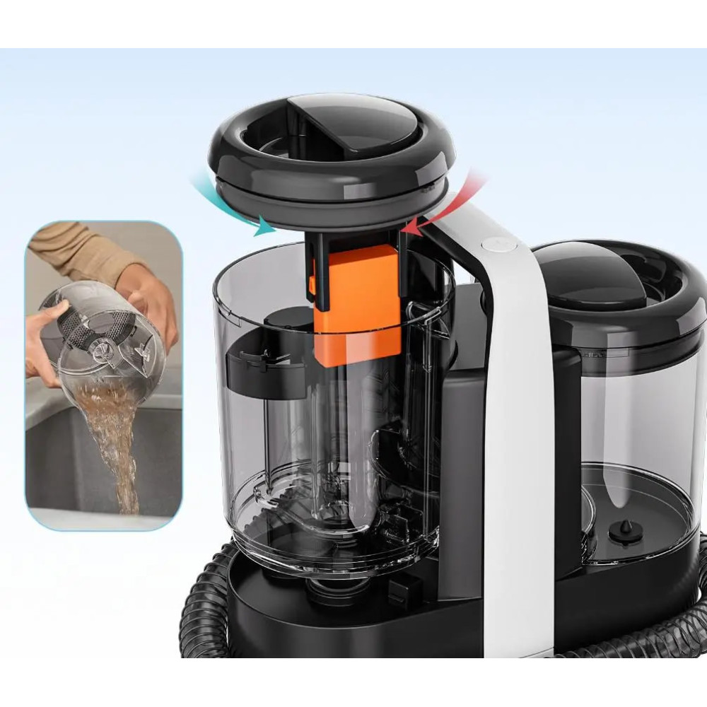 Система подачи моющего раствора и мощное всасывание обеспечивают глубокую очистку тканей, сохраняя их цвет и свежесть. Насадка-экстрактор помогает удалять даже застарелые пятна, а прозрачный резервуар позволяет контролировать уровень воды и чистоты