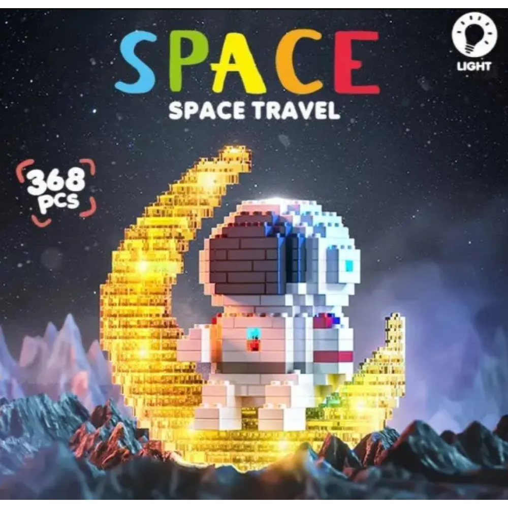 Мини конструктор Space Travel Астронавт на Луне с LED подсветкой и встроенным аккумулятором, 368 деталей