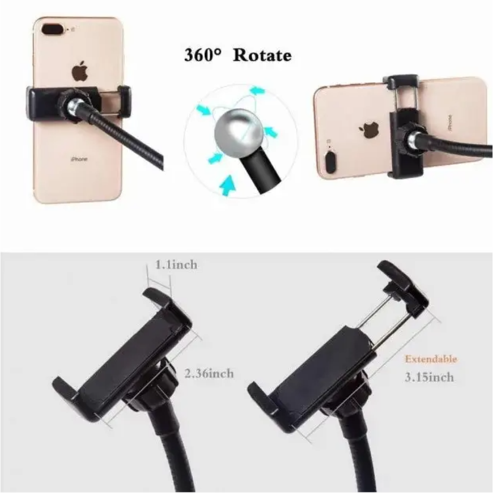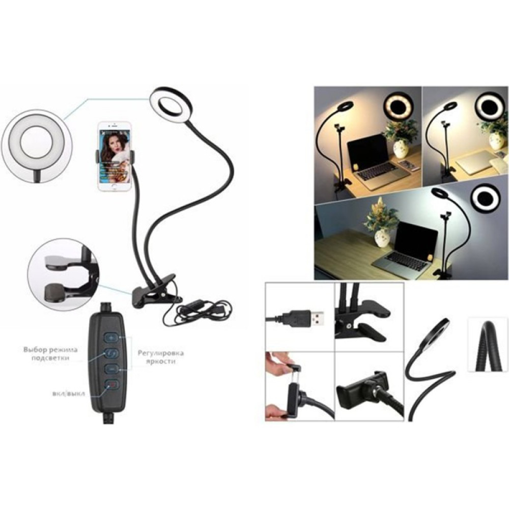 Это удобнейшая вещь для тех кому социальные сети приносят доход и популярность, компактная гибкая лампа с держателем для телефона не только осветит съемку, но и освободит руки от телефона, а универсальная прищепка даст возможность установить кольцевой свет где угодно.