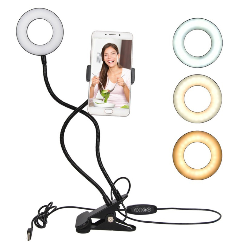 Набор блогера Professional Live Stream Кольцевая светодиодная LED лампа – кольцо с гибким держателем телефона ∙ Теплый / холодный свет ∙ USB подключение