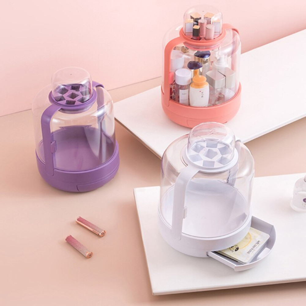 Органайзер для косметики изготовлен из прочного пластика. Он имеет многоярусную структуру, что позволяет сэкономить пространство на столе, тумбочке, подоконнике или любом другом месте, куда Вы поставите органайзер.