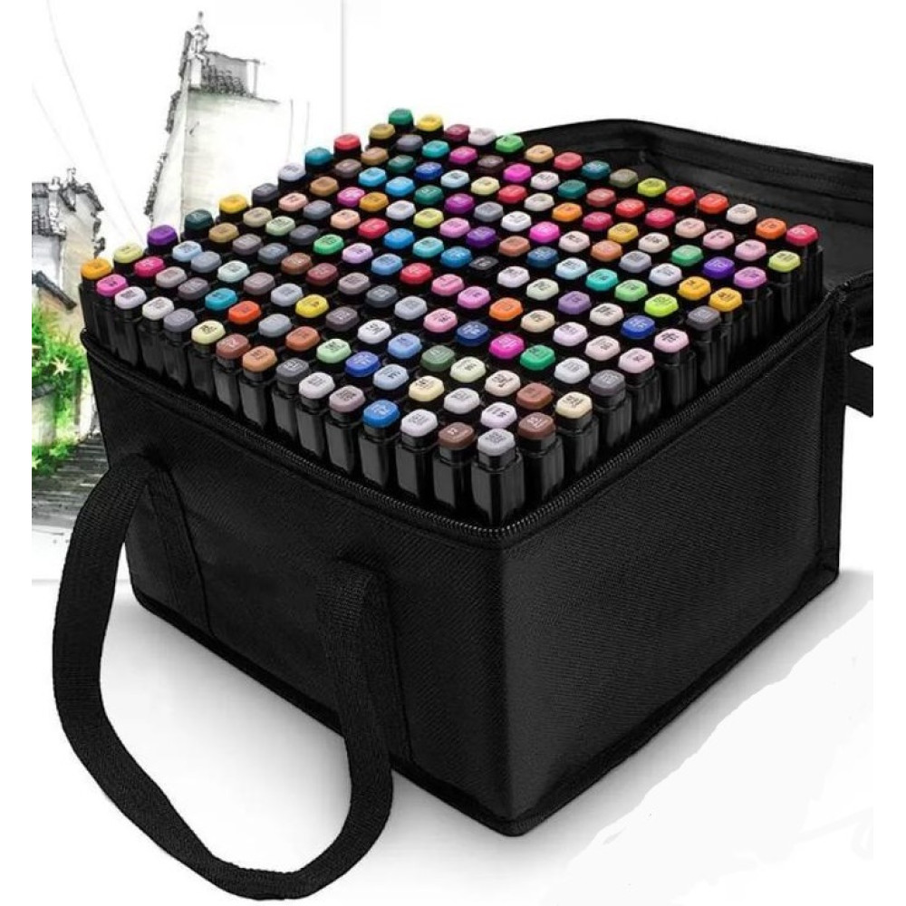 Маркеры для рисования и скетчей в черном тканевом футляре. Двусторонние, на спиртовой основе.