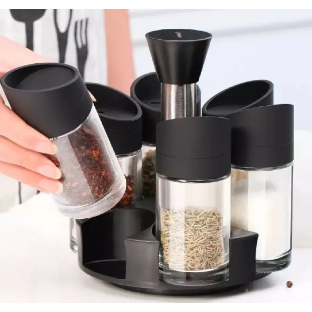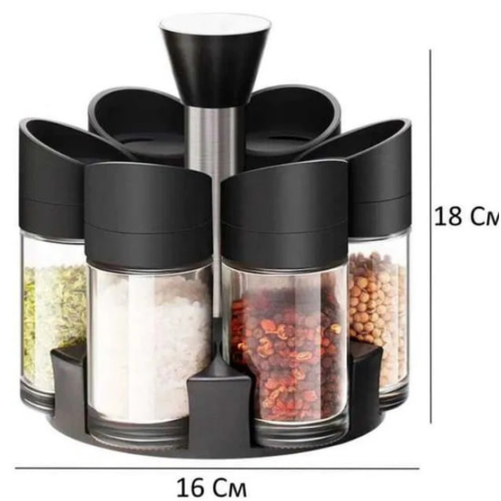 Набор емкостей для специй , 6 баночек ∙ Карусель для специй Especia спецовница ∙ Черная