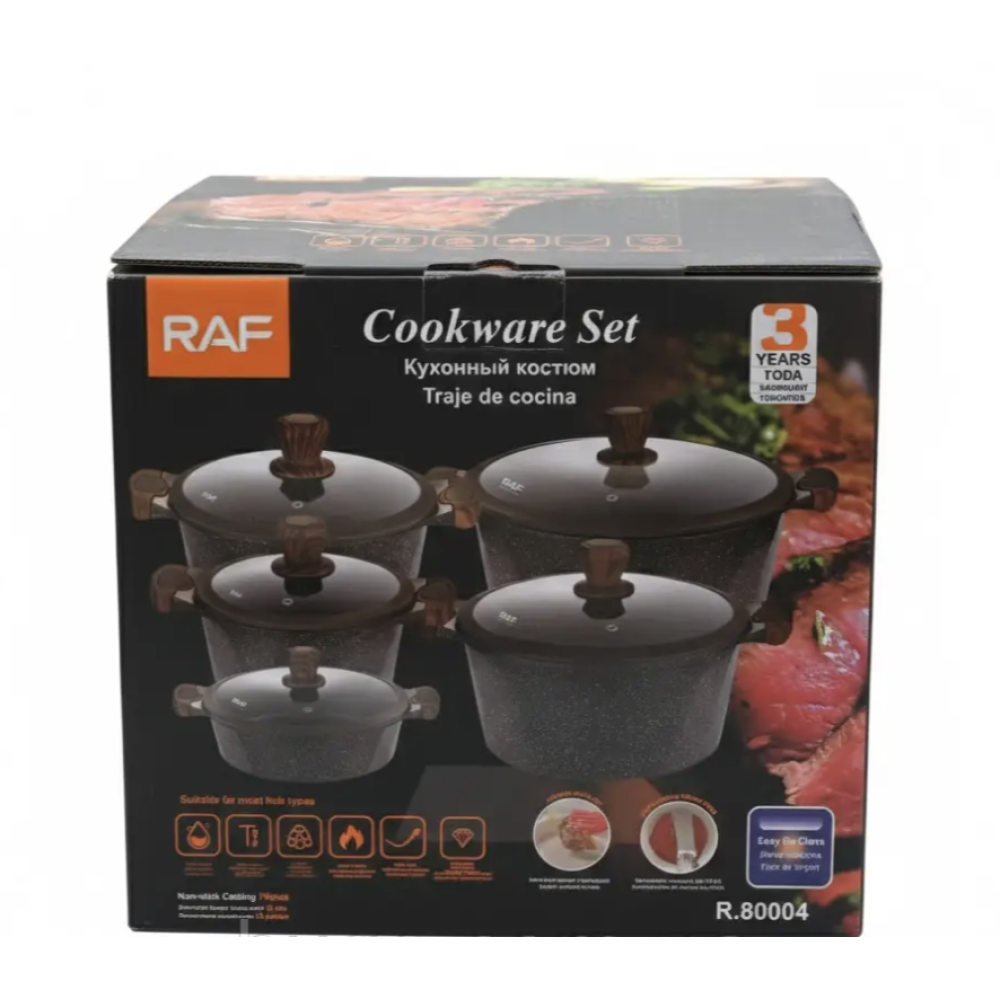 Заказывайте Набор кастрюль 5 в 1 RAF set r-80004 с антипригарным покрытием ∙ Кастрюли кухонные r-80004 - стиль и надежность в каждой детали на нашем сайте!