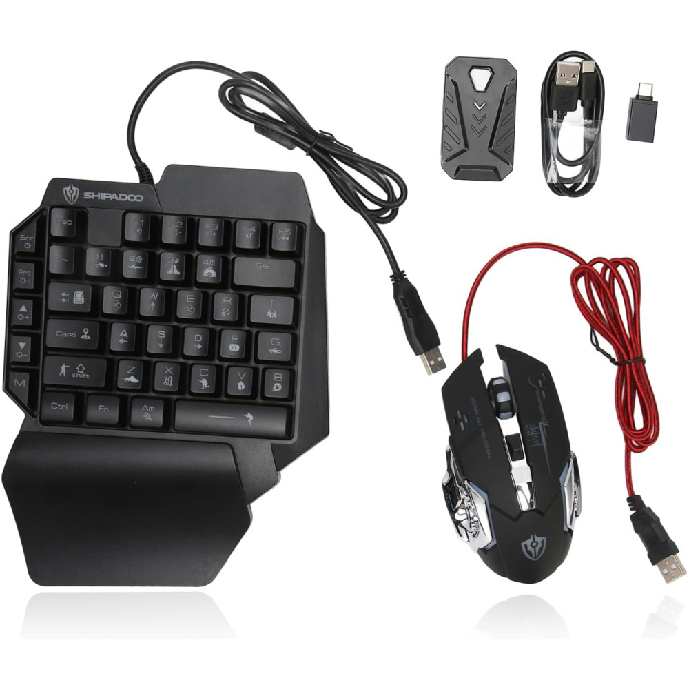Набор Mix Pro включает клавиатуру, мышь и адаптер для подключения к консоли, обеспечивая комфортную работу и игровой процесс на ПК или игровых приставках