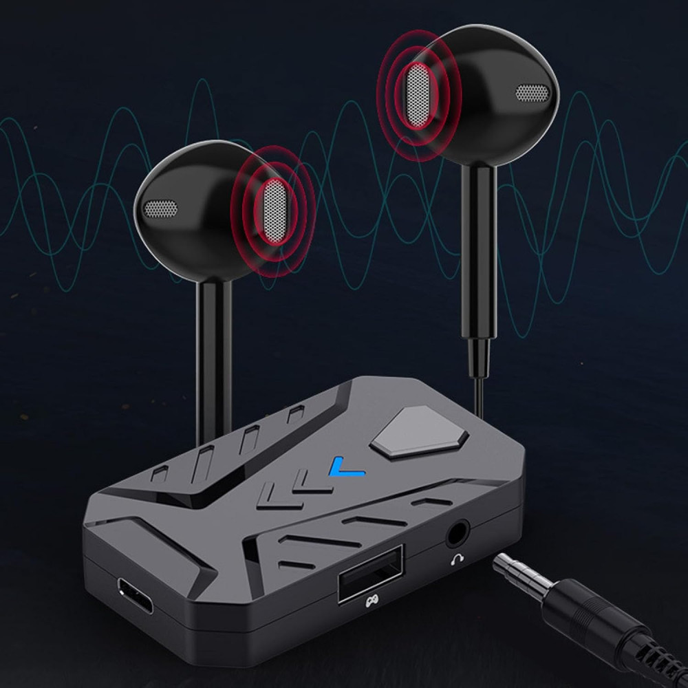 Адаптер для подключения к консоли оснащён двумя USB-разъёмами для клавиатуры и мыши, а также стандартным разъёмом 3,5 мм для наушников. На обороте находятся Type-C порты для подключения адаптера к консоли