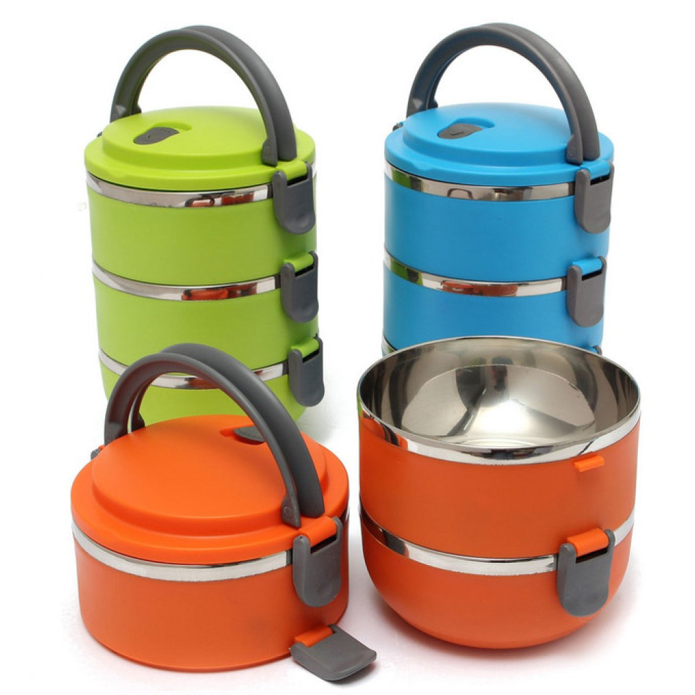 3 Layer Stainless Steel Lunch Box представляет собой набор из трех ёмкостей, которые позволяют сохранять тепло приготовленной пищи до двух часов.