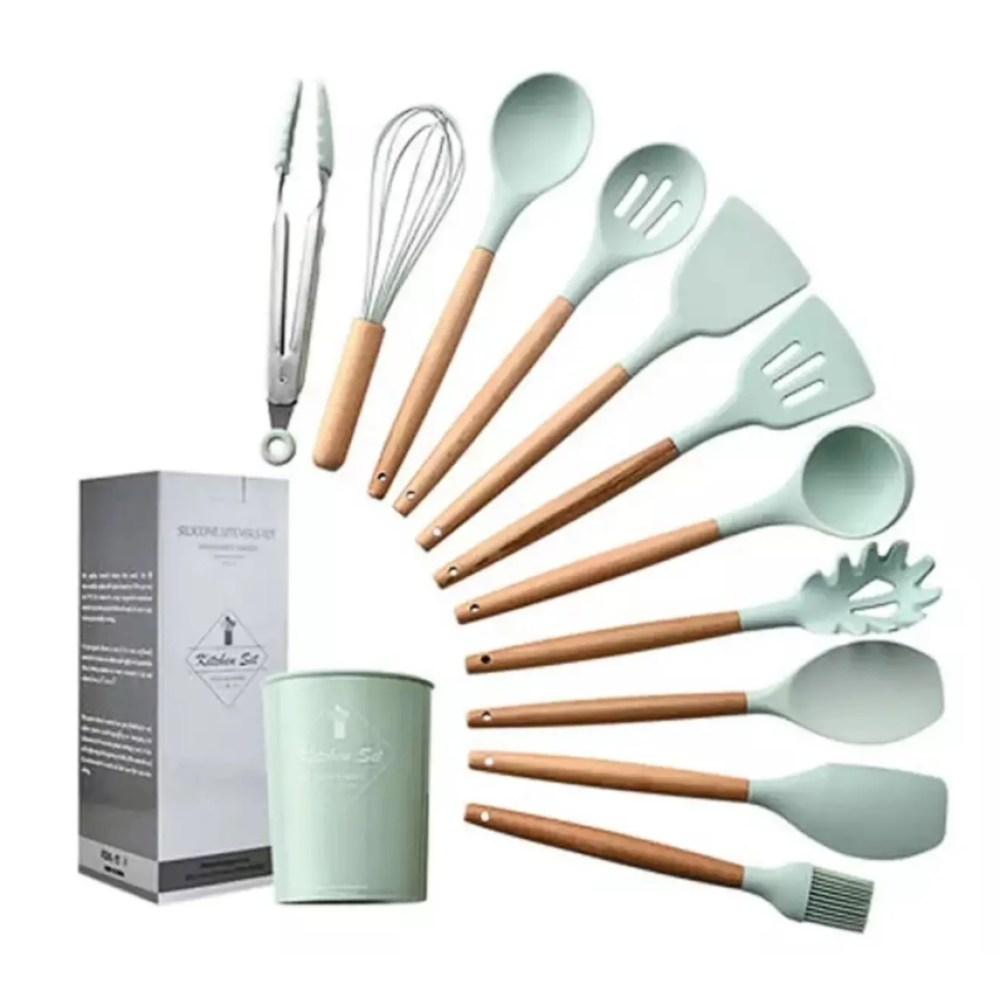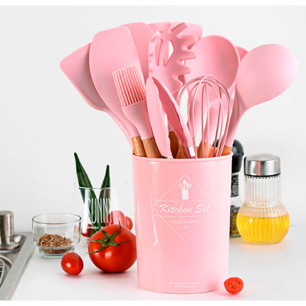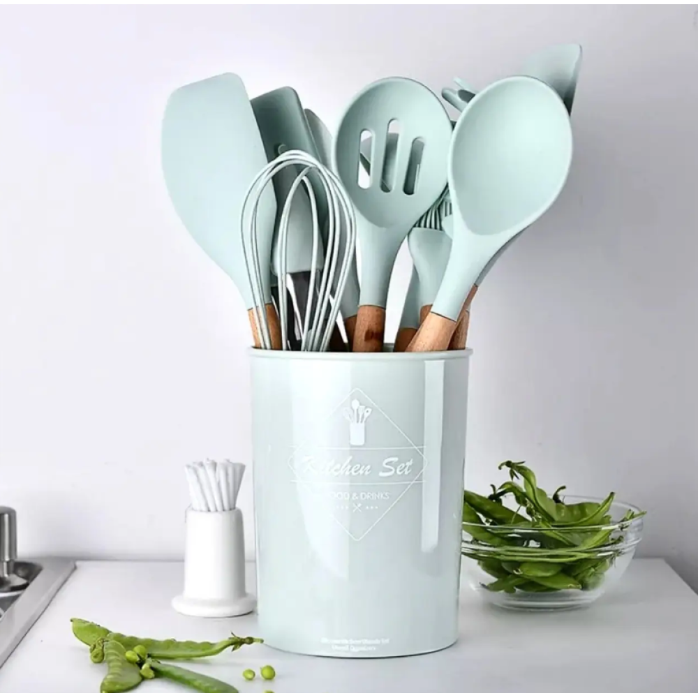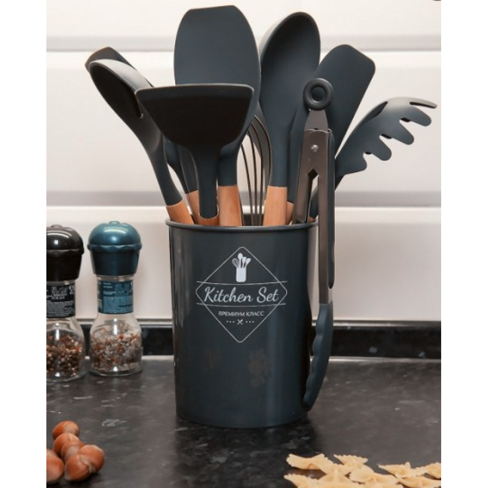Набор кухонных принадлежностей Kitchen Set, 12 предметов ∙ Силиконовые аксессуары для кухни с подставкой