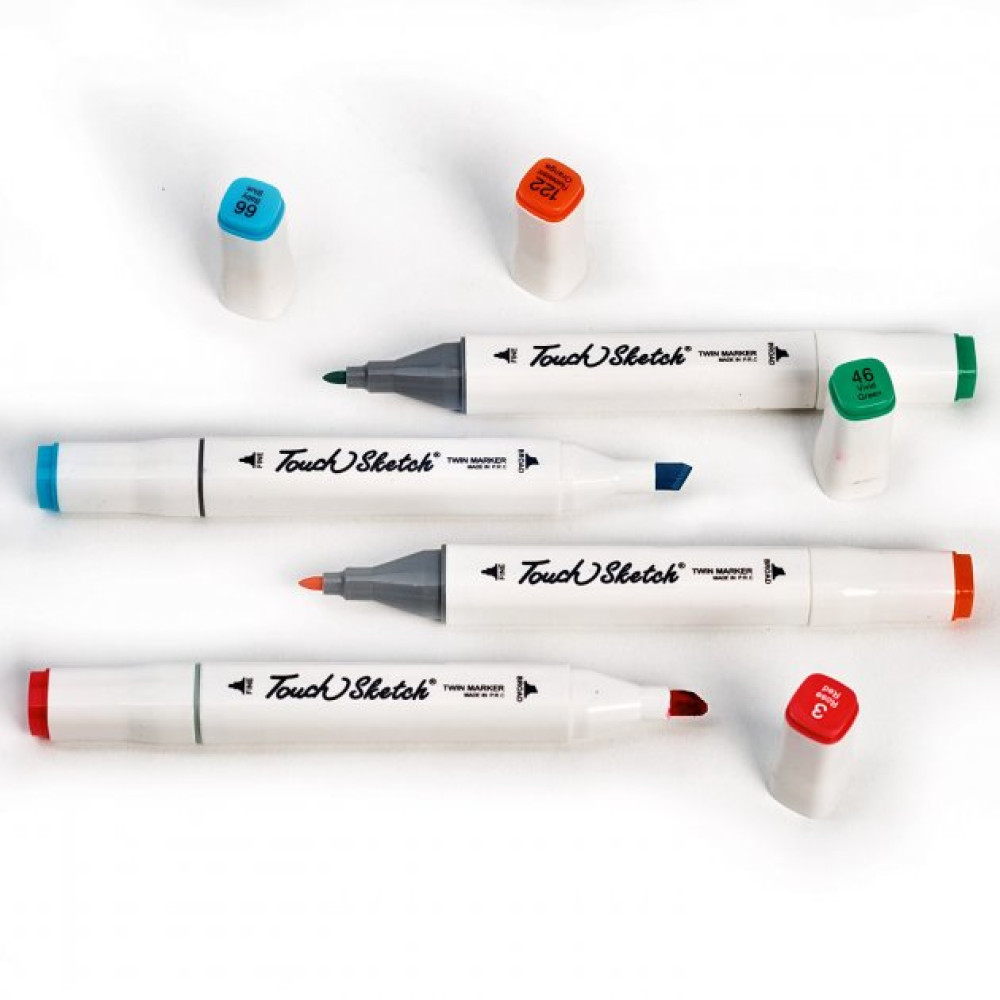 Художественные маркеры для скетчинга для рисования на бумаге Sketch Marker Touch Raven являются одними из самых востребованных спиртовых, двухсторонних маркеров. В наборе маркеров дизайнер найдет вдохновение для реализации своего творческого потенциала. Маркер имеет два пера (перо "долото" и перо маркер). Цвет маркера отображен на колпачке, там же и номер маркера. Это значительно упрощает работу при выборе необходимого цвета.
