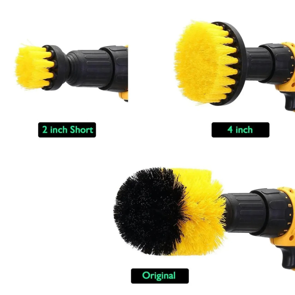 • Набор из трёх насадок: включает щётки разного диаметра (4", 2") и коническую форму для углов.