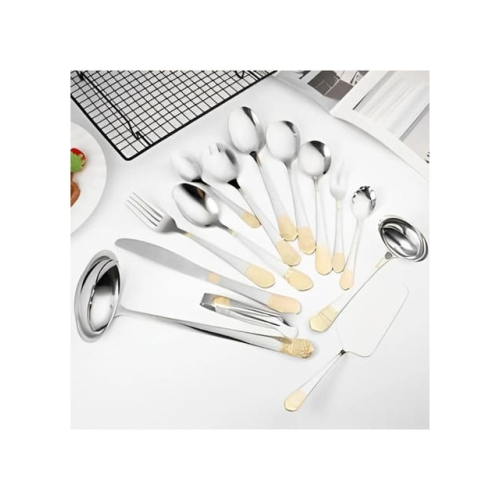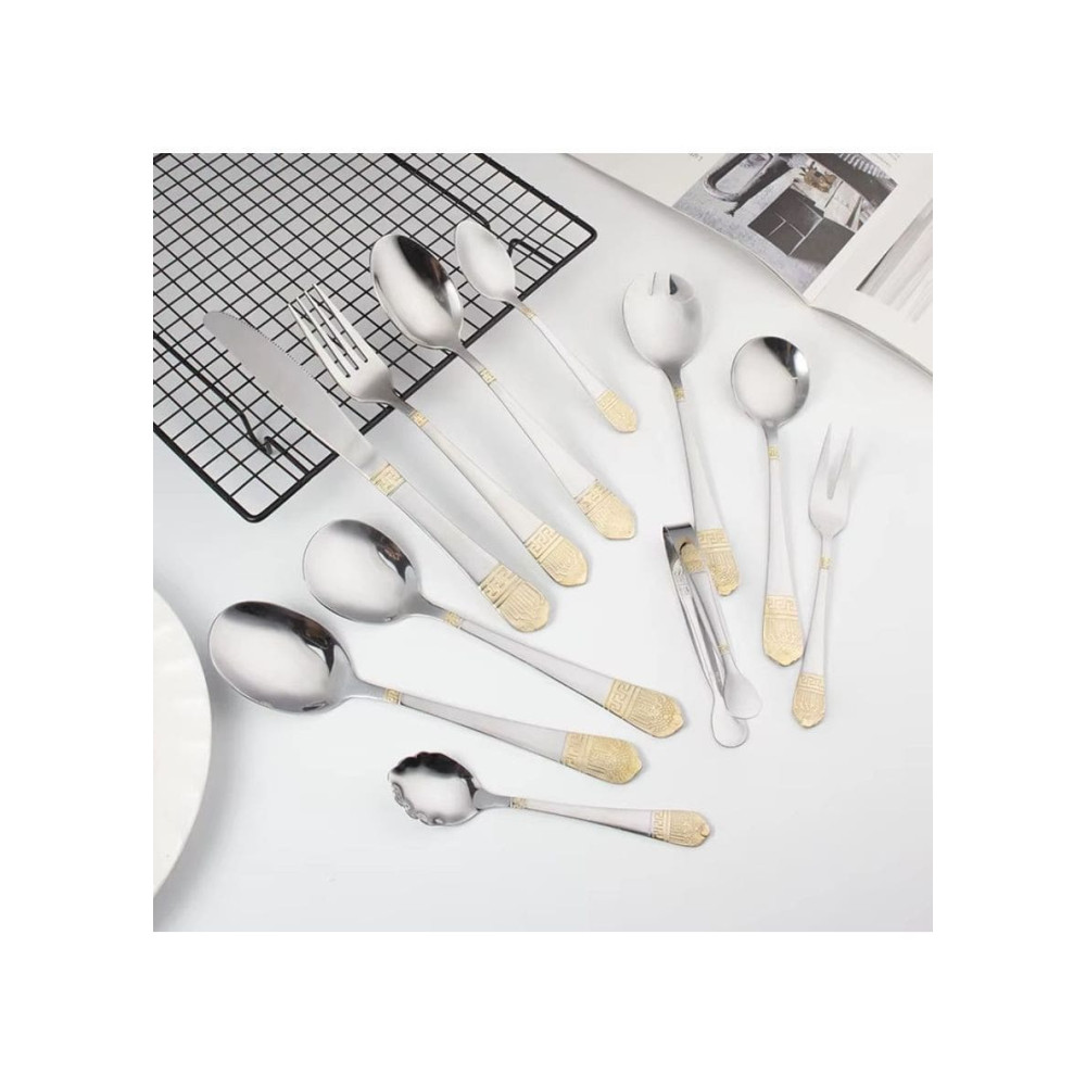 Элегантный набор столовых приборов Bachmayer выполнен из высококачественной нержавеющей стали с изысканным золотистым орнаментом. Классический дизайн и сочетание глянцевой и матовой поверхности делают комплект стильным дополнением к праздничной и повседневной сервировке сто