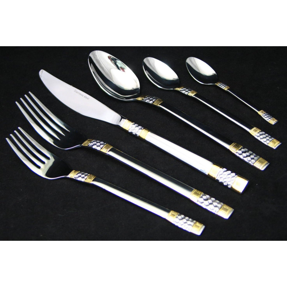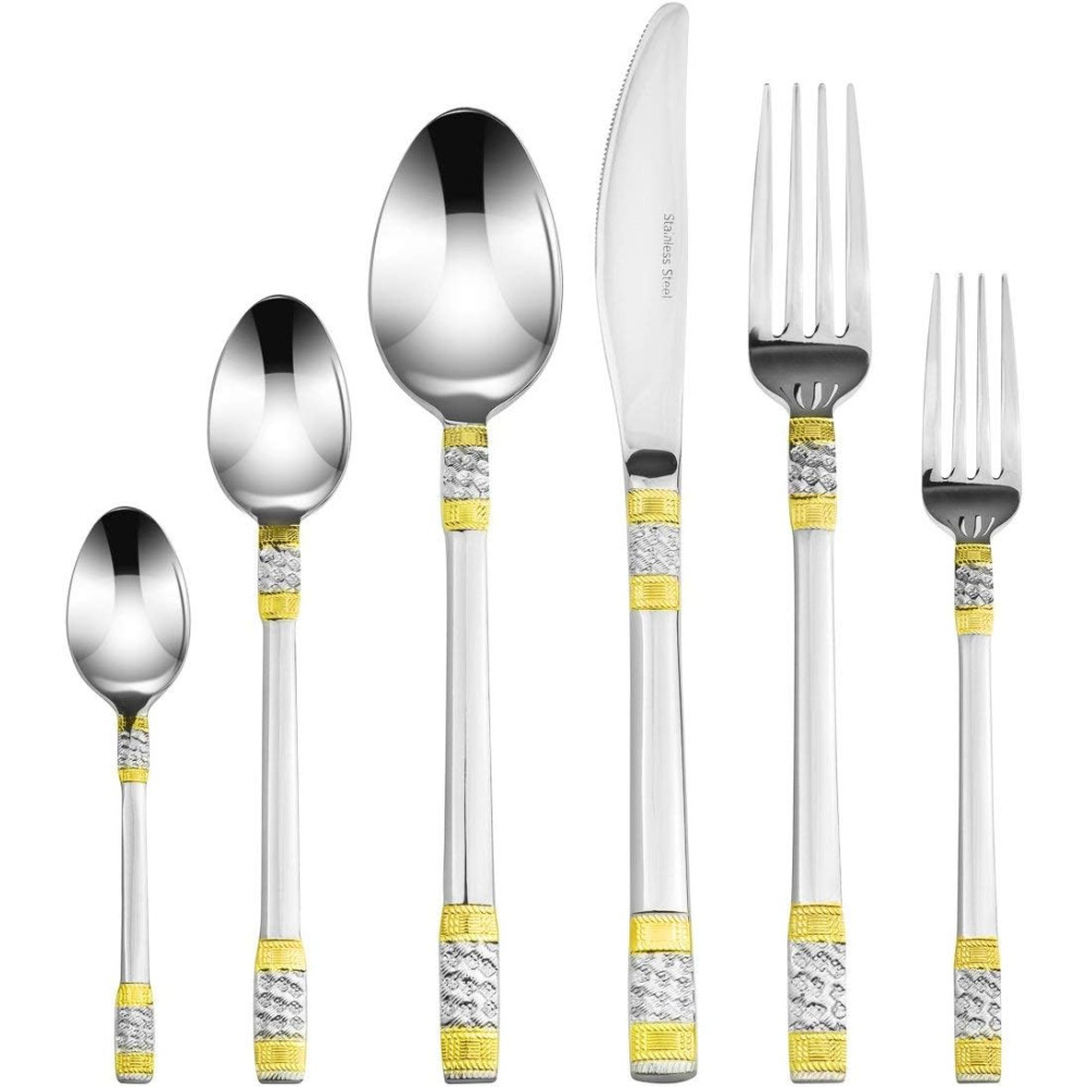 Элегантный набор столовых приборов Bachmayer выполнен из высококачественной нержавеющей стали с изысканным золотистым орнаментом. Классический дизайн и сочетание глянцевой и матовой поверхности делают комплект стильным дополнением к праздничной и повседневной сервировке стола