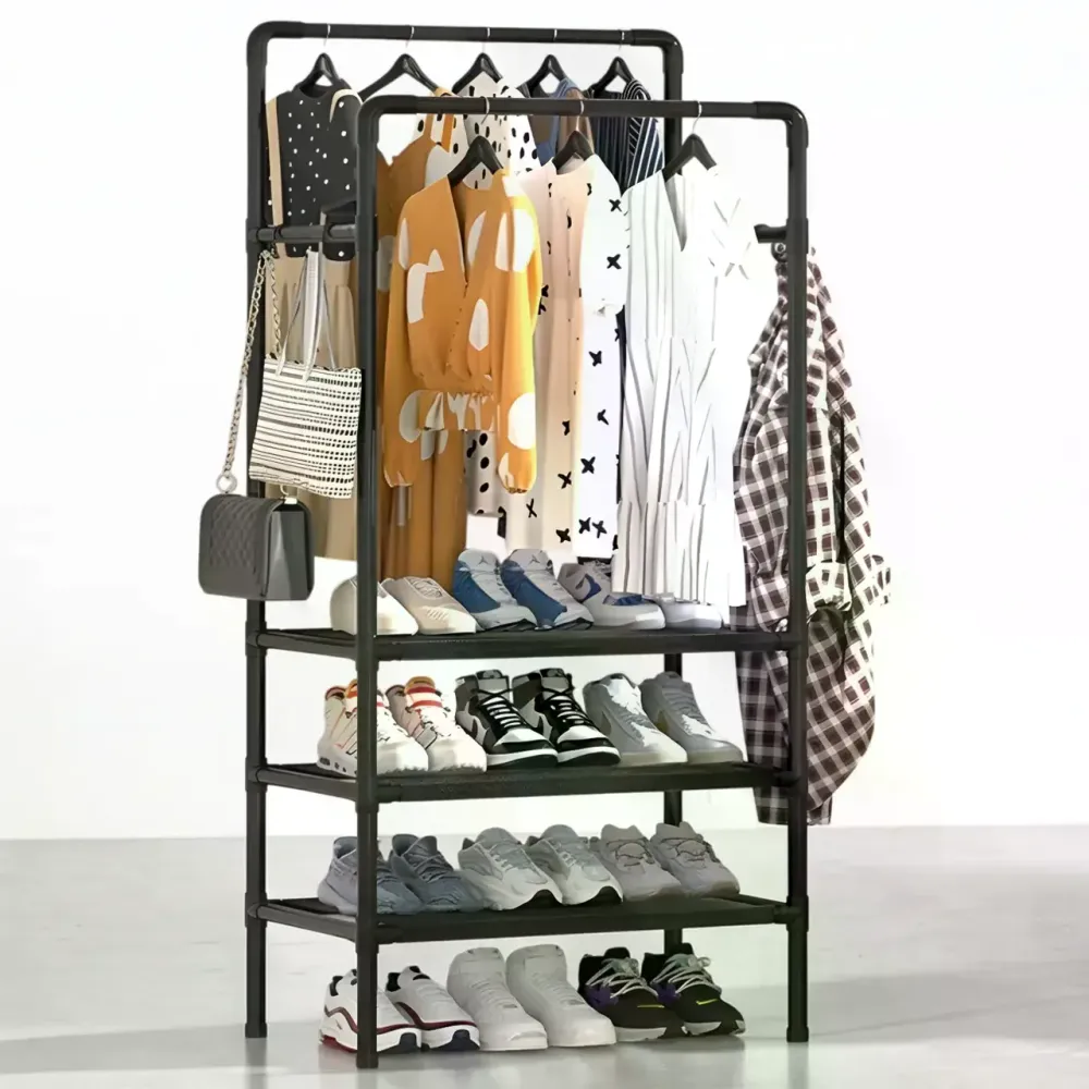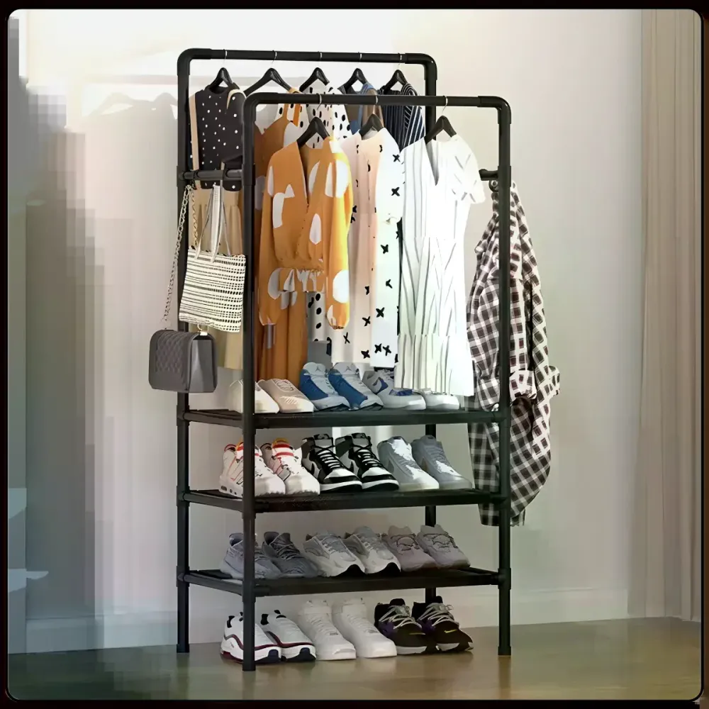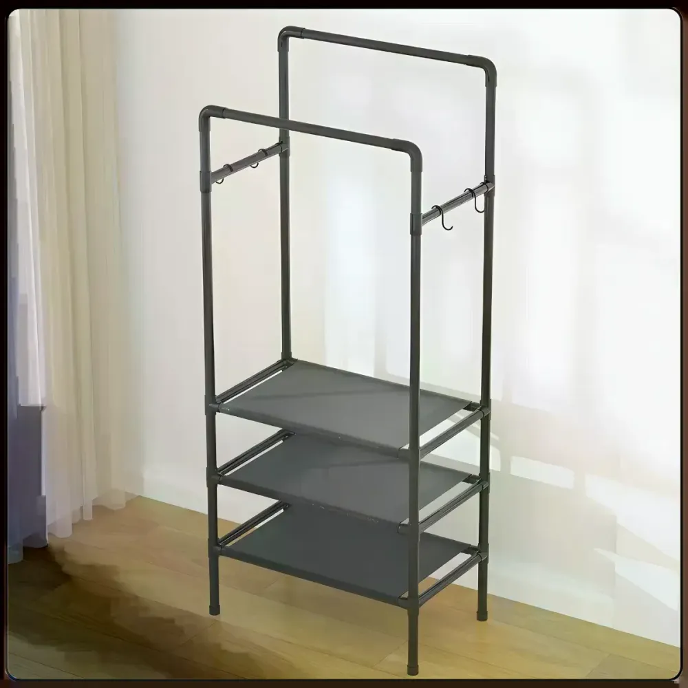 Если нужен компактный органайзер для одежды без покупки полноценного шкафа, эта модель станет удобным помощником в повседневной жизни. На перекладинах можно хранить одежду в развешенном виде, а на полках удобно размещать обувь, сумки, коробки и другие нужные вещи. Такая стойка особенно выручает там, где хочется сохранить ощущение легкости в интерьере и при этом держать все необходимое под рукой.