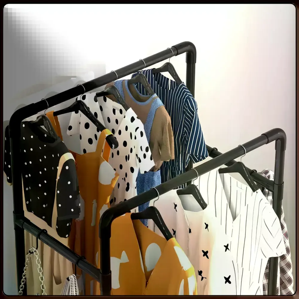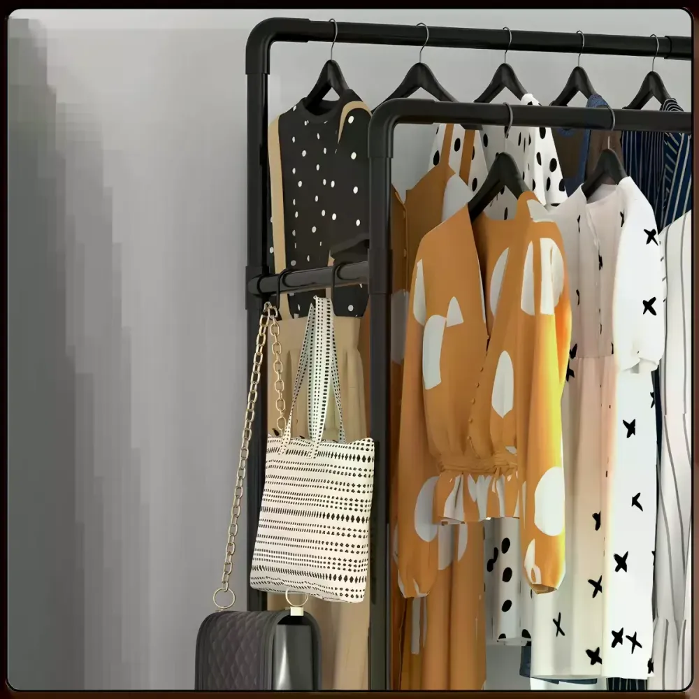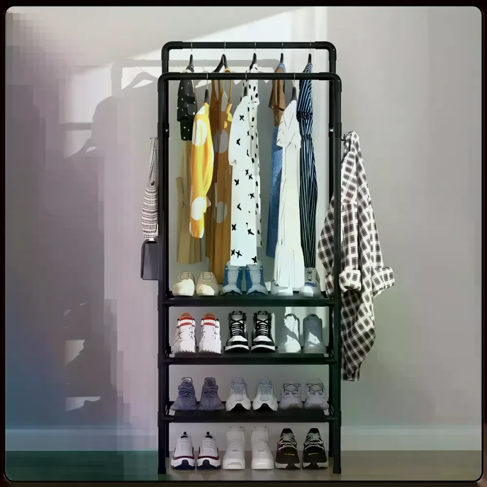 Практичная стойка для одежды, которая помогает быстро навести порядок и освободить полезное пространство в комнате.