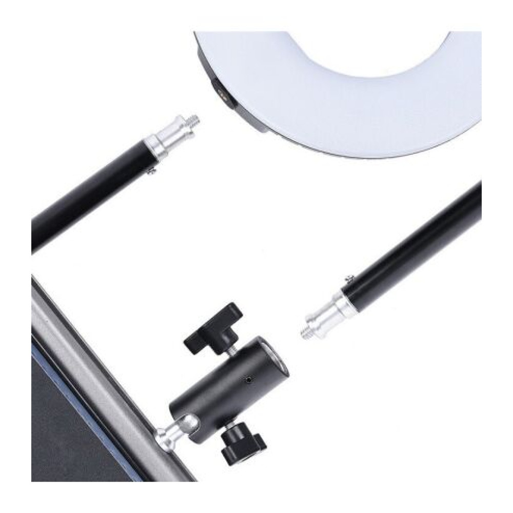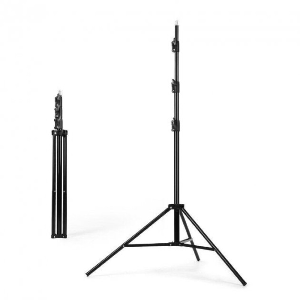 Напольный штатив тринога для кольцевой лампы · Стойка тринога для видеокамеры, фотоаппарата максимальной высотой 2,1 м идеально подойдёт для всех типов кольцевых ламп, а также предназначена для установки студийных и накамерных вспышек. Вес стойки позволяет надежно удерживать практически все студийные вспышки, вес которых не превышает 2кг.