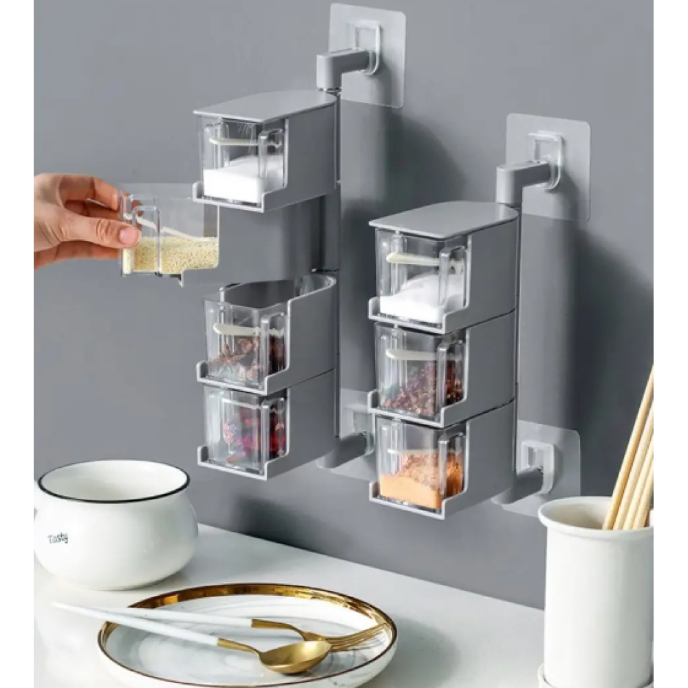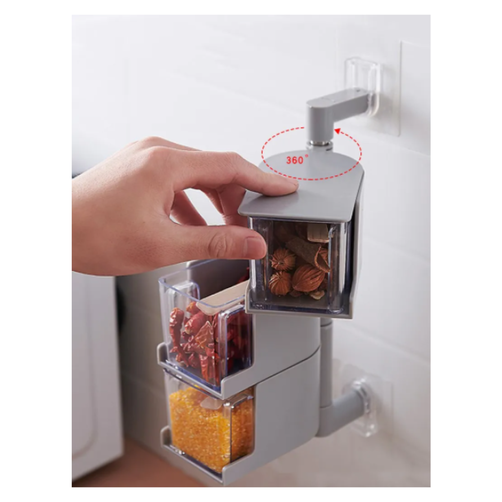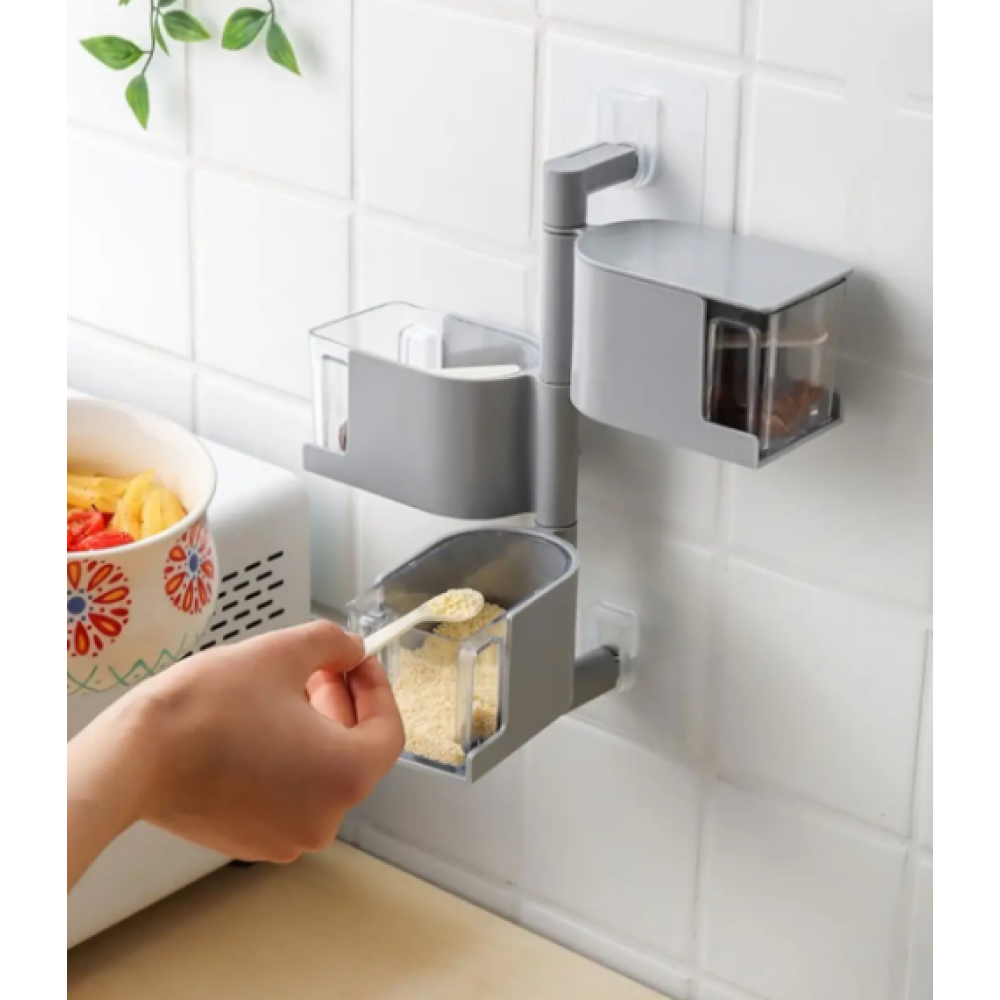 Настенный поворотный органайзер для специй 360° Модульная полочка с вращающимися контейнерами для хранения специй и приправ