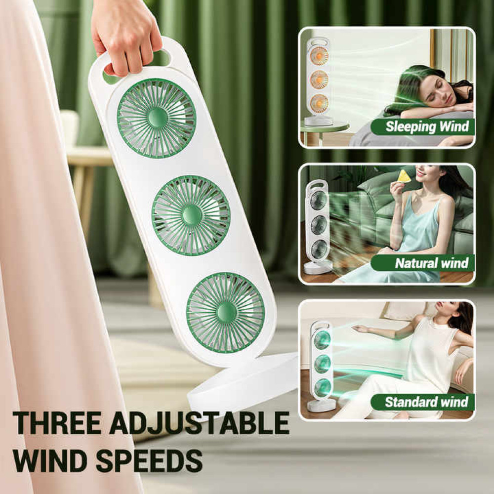 Настольный мини-вентилятор с тремя головками аккумулятором и зарядкой Type-C • Трёхголовочный вентилятор USB LY-856 / S-31