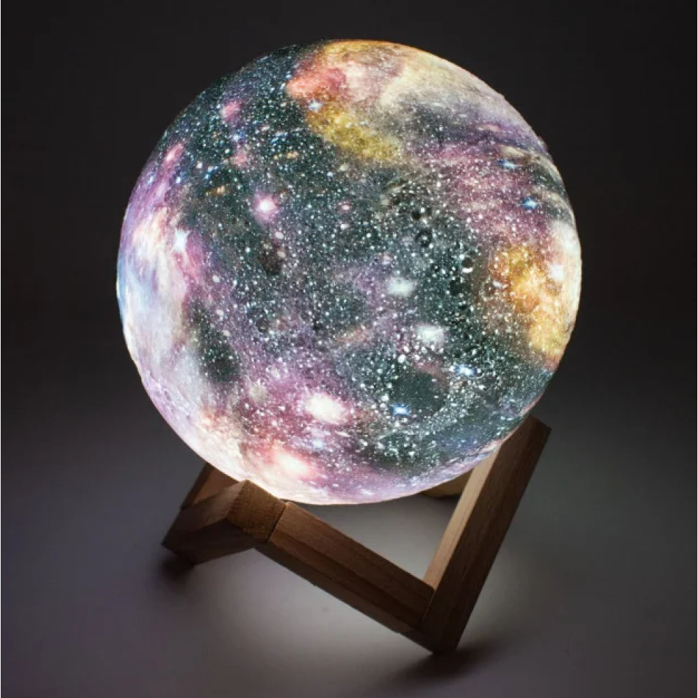Лампа изготовлена с помощью инновационной технологии 3D-печати. Текстура корпуса имитирует реальный внешний вид кратеров на поверхности Луны и смотрится очень красиво.