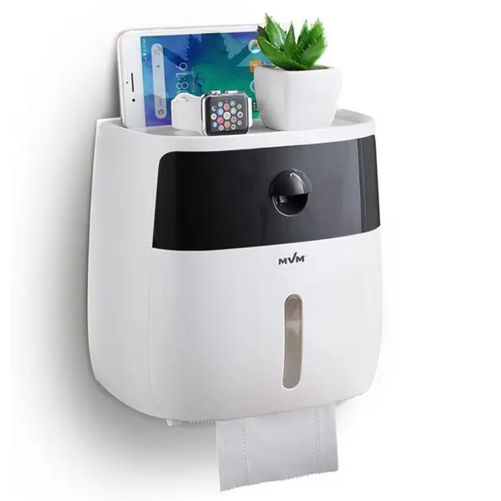 Держатель для туалетной бумаги имеет отделение для рулонной туалетной бумаги, отдельный выдвижной ящик и слот для гаджетов. Ящик держателя можно заправлять салфетками. Аксессуар выдерживает вес до 2,5 килограммов.