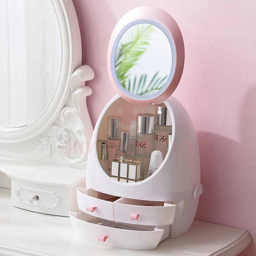 Заказывайте Органайзер для косметики "Яйцо" с зеркалом с LED подсветкой Бокс для хранения косметики 35х28х18см прямо сейчас на нашем сайте!