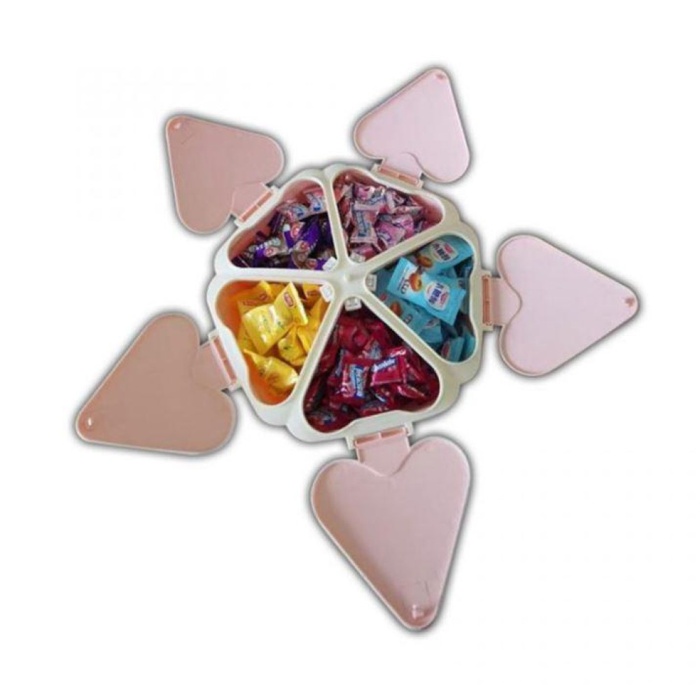 Органайзер для сладостей Peach Heart Shape · Менажница – конфетница 5 отсеков · Тарелка для закусок с подставкой для телефона - это идеальная тарелка для закусок, она поможет навести порядок среди ваших конфет и других любимых вкусняшек. Вращающаяся тарелка Stenson для закусок и сладкого выглядит в форме цветка, дополнит любой праздничный стол. Имеет 5 выдвижных лепестков, в которые вы сможете положить разнообразную закуску, фрукты, сладости, сыры и многое другое. Вращающаяся коробка для хранения сладостей и закусок станет центром притяжения гостей и близких, а еще она просто незаменима для фондю. Положите разнообразную закуску во вращающуюся тарелку, а рядом поставьте зубные палочки и теперь каждый гость сможет сделать свои собственные канапе.