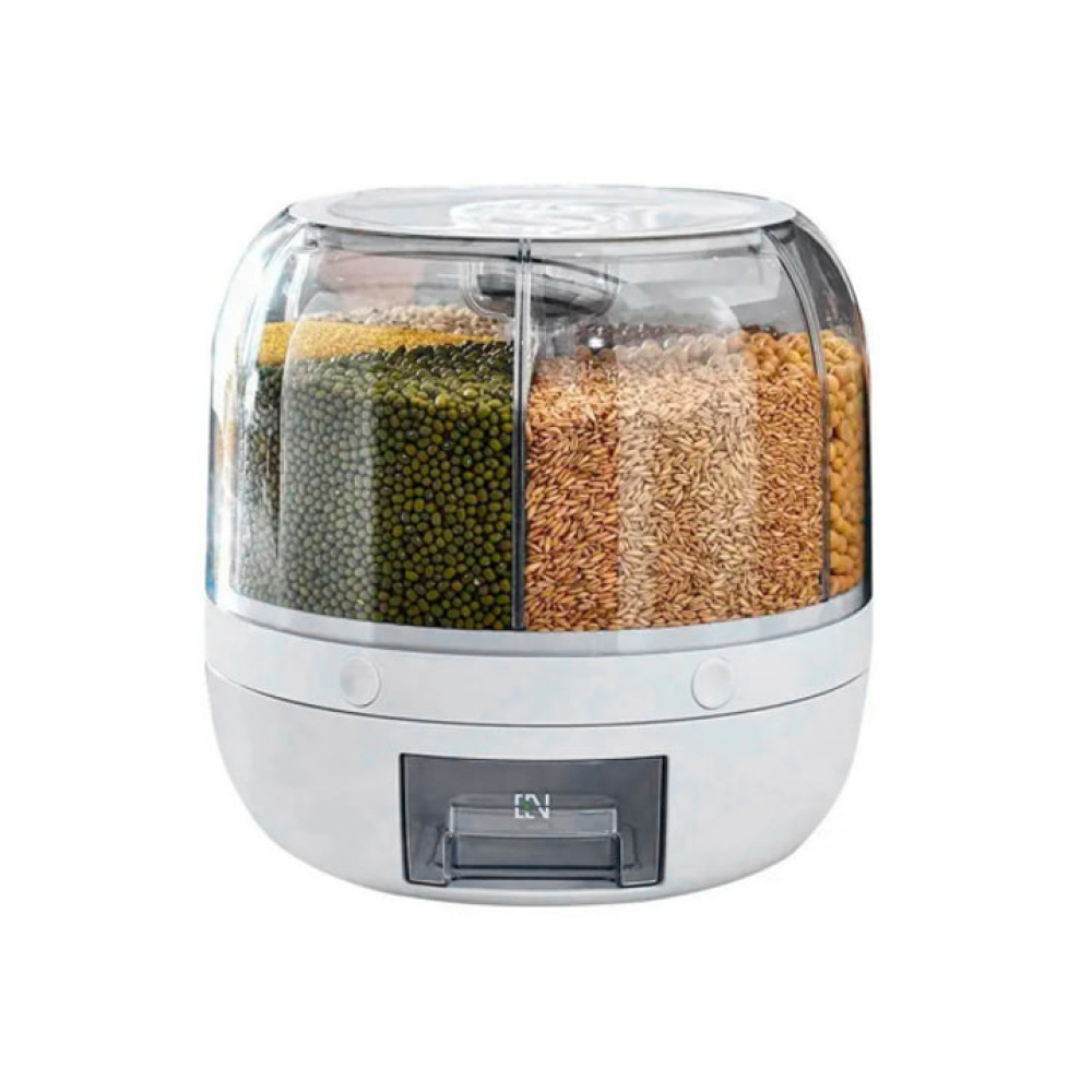 Диспенсер оснащён шестью отделениями, которые разделяют продукты, не давая им смешиваться. Благодаря вращению на 360 градусов вы с лёгкостью доберётесь до нужного отсека даже в углу кухни, что делает использование органайзера максимально удобным.