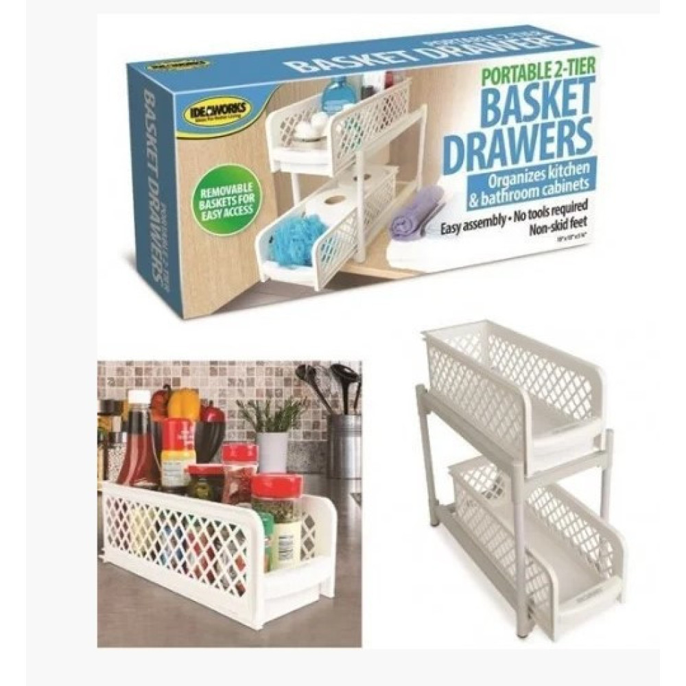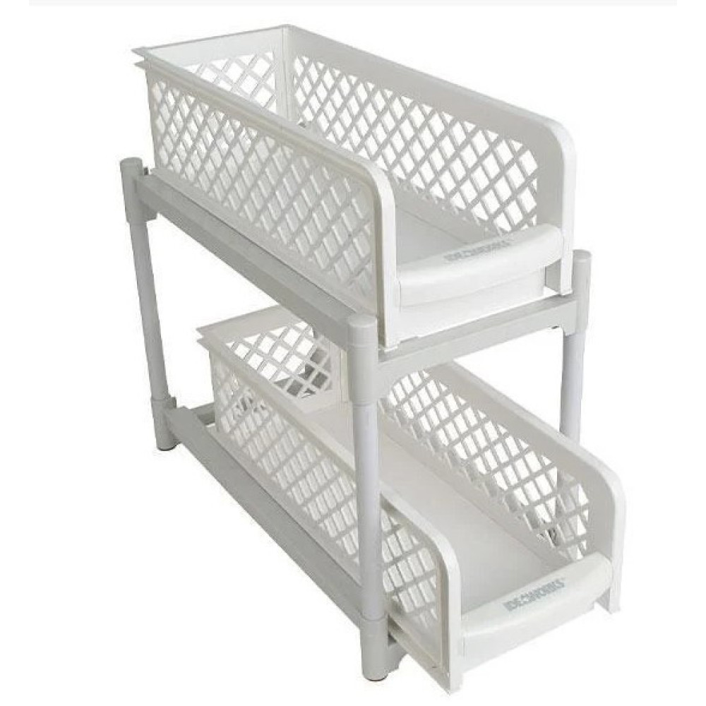 Органайзер для ванной комнаты для бытовых принадлежностей. С Органайзером Portable 2 Tier Basket Drawers Вы сможете организовать пространство и создать уют в ванной комнате. Органайзер состоит из 2-ух выдвигающихся полочек. Высота полок позволяет разместить флаконы, коробочки и тубы разной высоты. Органайзер для хранения Portable состоит их двух секций - отлично подходит для организации кухни и ванной комнаты.