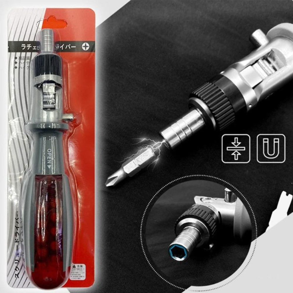 Отвертка 11 в 1 с храповым механизмом — это универсальный инструмент, который станет незаменимым помощником как дома, так и на открытом воздухе. Набор идеально подходит для ремонта бытовой техники, сборки мебели, обслуживания электроники и выполнения любых мелких ремонтных работ. Благодаря храповому механизму ручка вращается вперед и назад без остановки, позволяя быстро и легко затягивать или ослаблять винты.