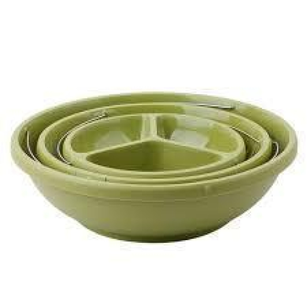 На дне есть большая чаша диаметром 28 см для ваших любимых чипсов, крекеров, хлеба, фруктов и т. Д., В середине есть еще один чаша диаметром 23 см, а сверху - разделенная верхняя чаша диаметром 18 см с тремя секциями для орехов, оливок, и т.д.