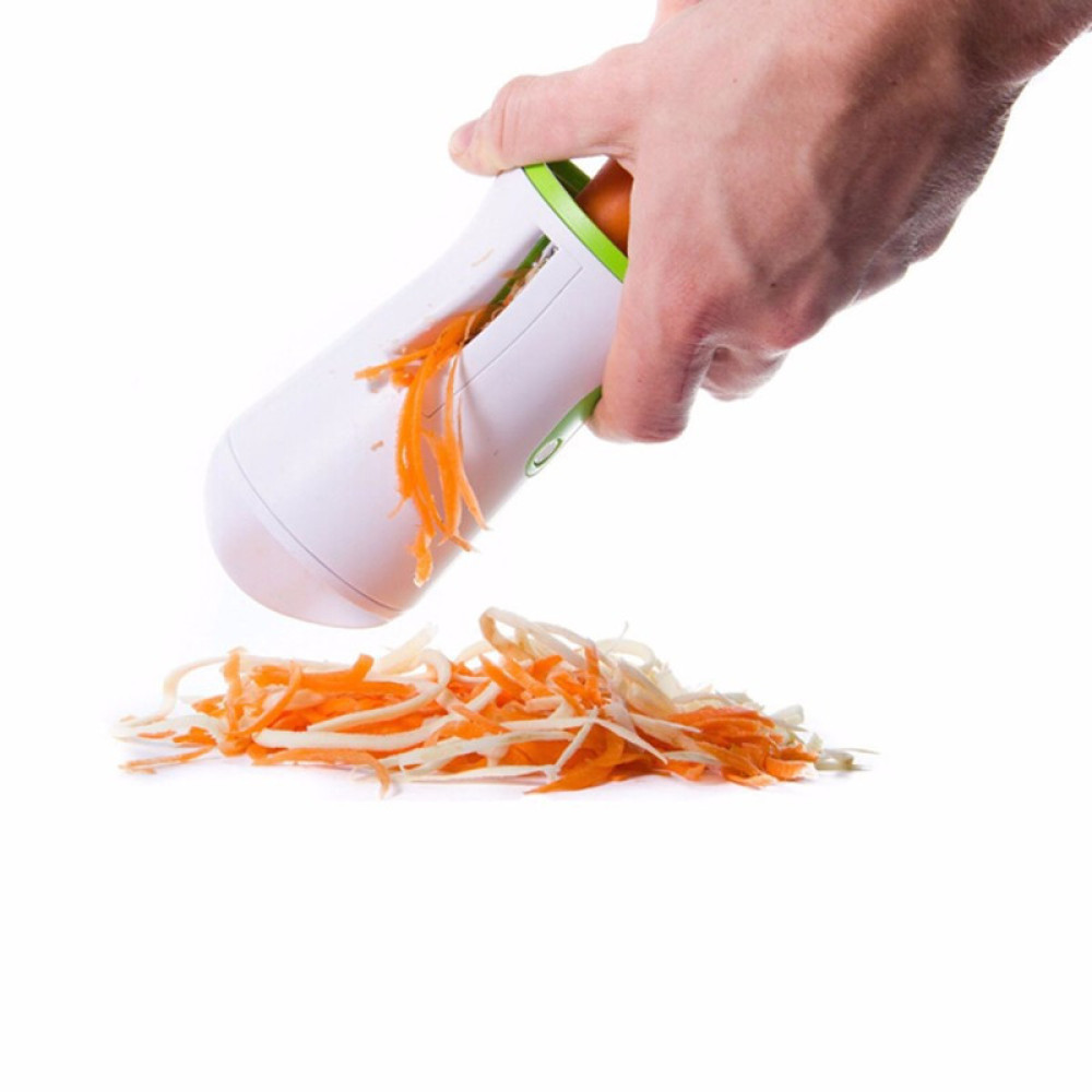 В комплект входит спиральная овощерезка с колпачком и 4 сменных лезвия. Лезвия овощерезки изготовлены из высококачественной стали и прослужат долгие годы. Благодаря удобному колпачку, вы минимизируете отходы при работе с овощерезкой.