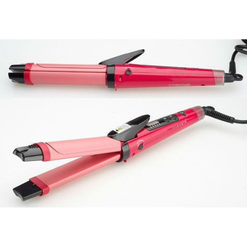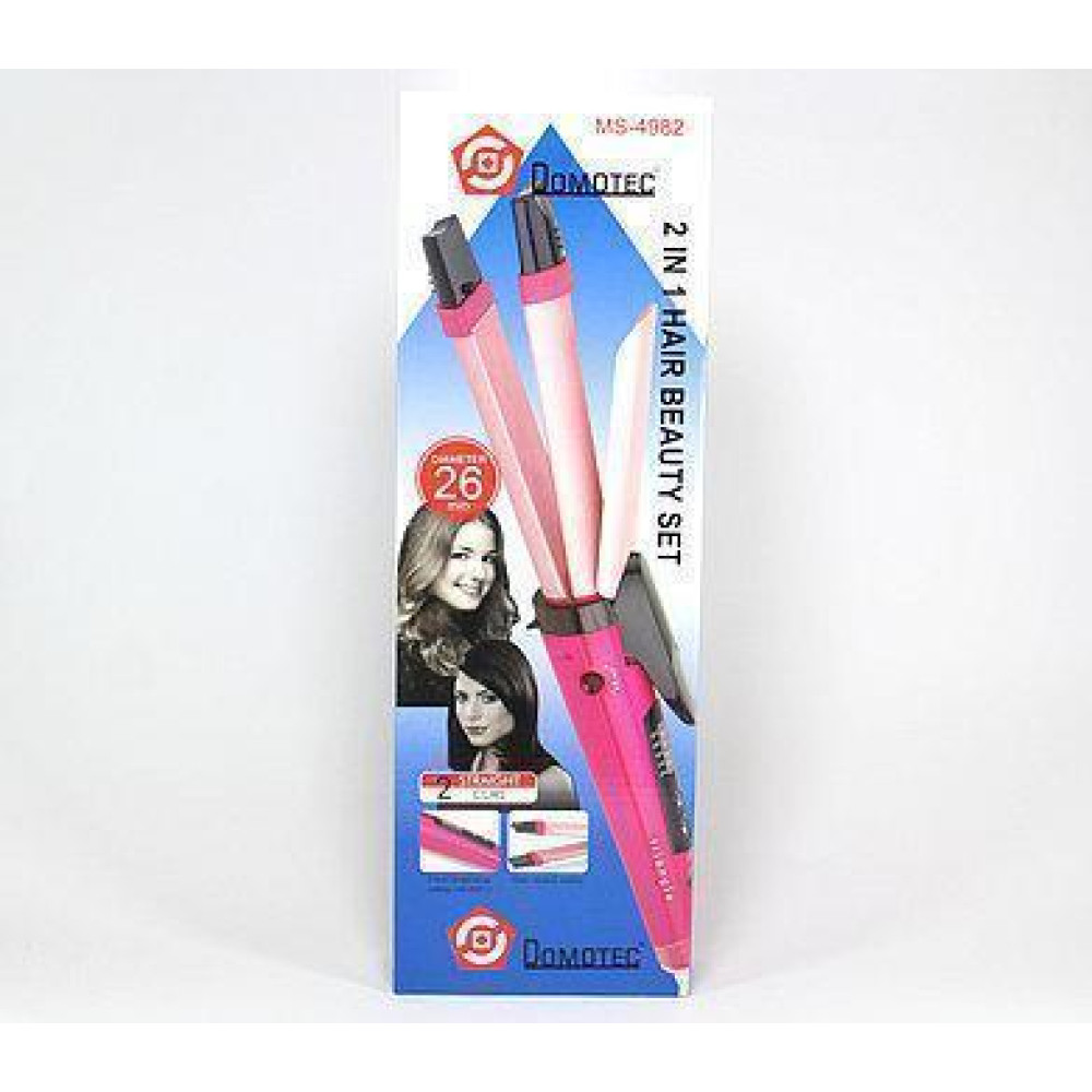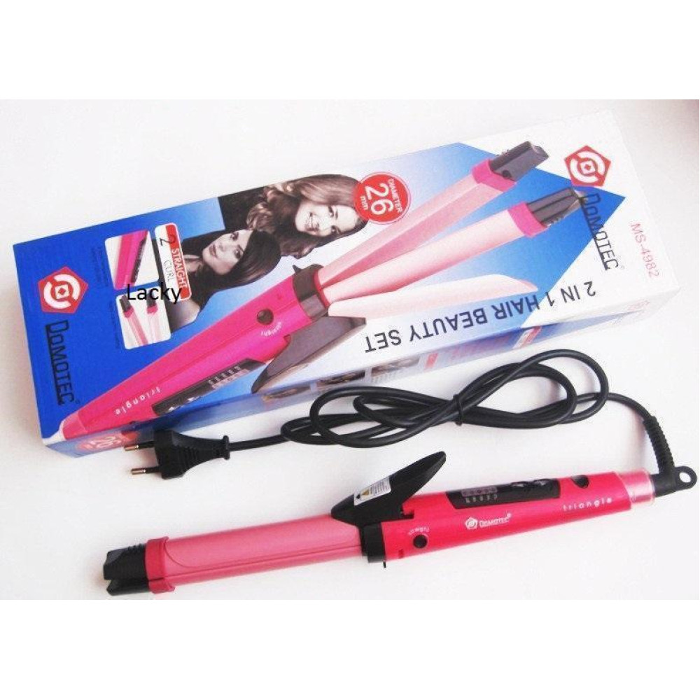 Благодаря необычной форме и наличию фиксатора пластин, Вы можете использовать Domotec MS-4982 как щипцы для завивки или выпрямитель - просто передвиньте черный переключатель в основании рабочей поверхности в положение "CURL" или "STRAIGHT".