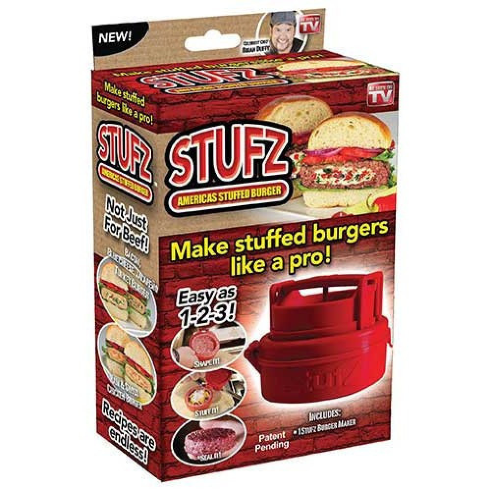 Пресс для приготовления бургеров STUFZ ― это очень простое приспособление. Настолько простое, что когда вы его увидите, вы удивитесь, почему его изобрели только совсем недавно. Все, что вам нужно сделать, это положить фарш для бургеров в пресс и простым нажатием сформировать из фарша «мясную чашку», открыть пресс, положить в эту «чашку» начинку добавить фарша на крышку пресса и сжать его еще раз. Вот и все! Ваш бургер готов для гриля!