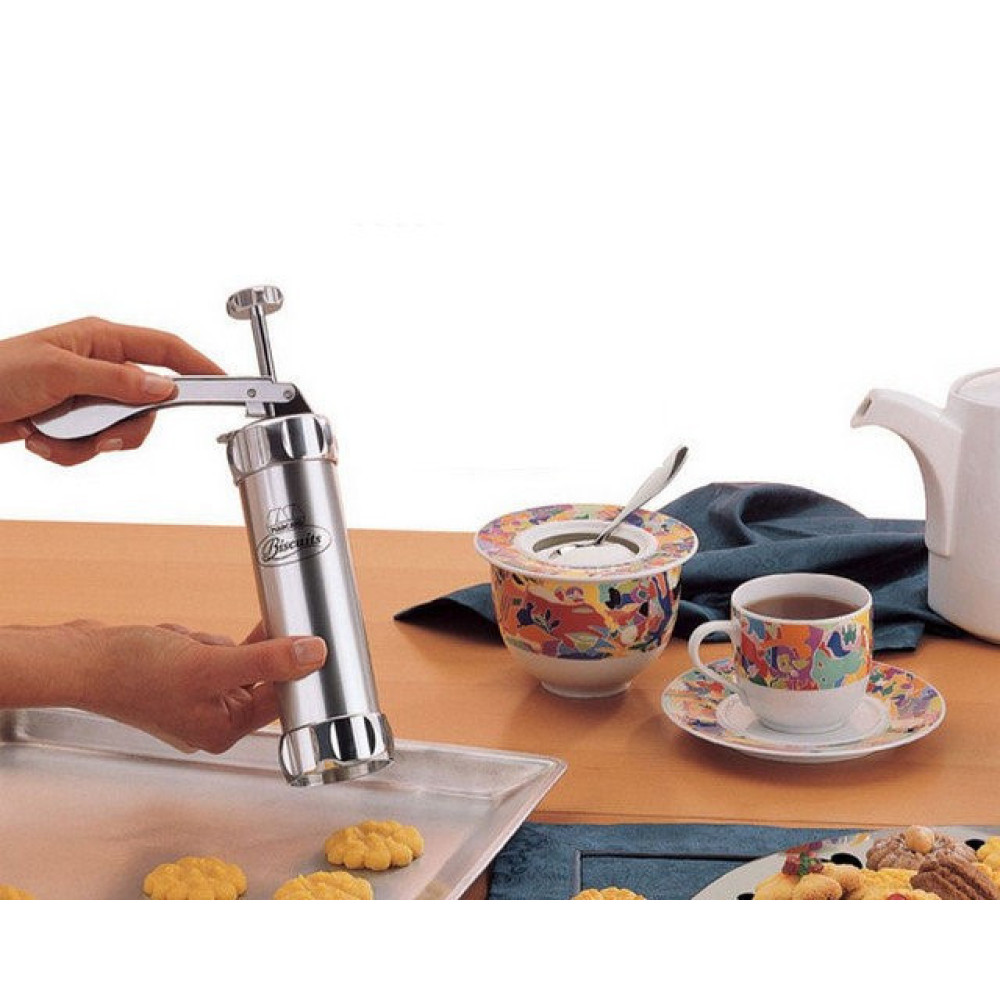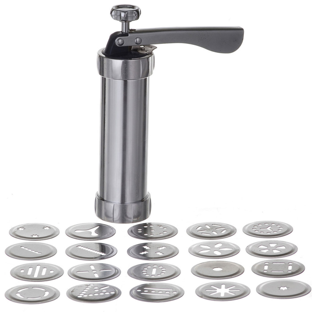 Кондитерский шприц-пресс с 24 насадками для изготовления печенья- профессиональный кондитерский пистолет, который поможет получить разнообразное печенье ручной работы в домашних условиях или на небольшом кондитерском производстве.