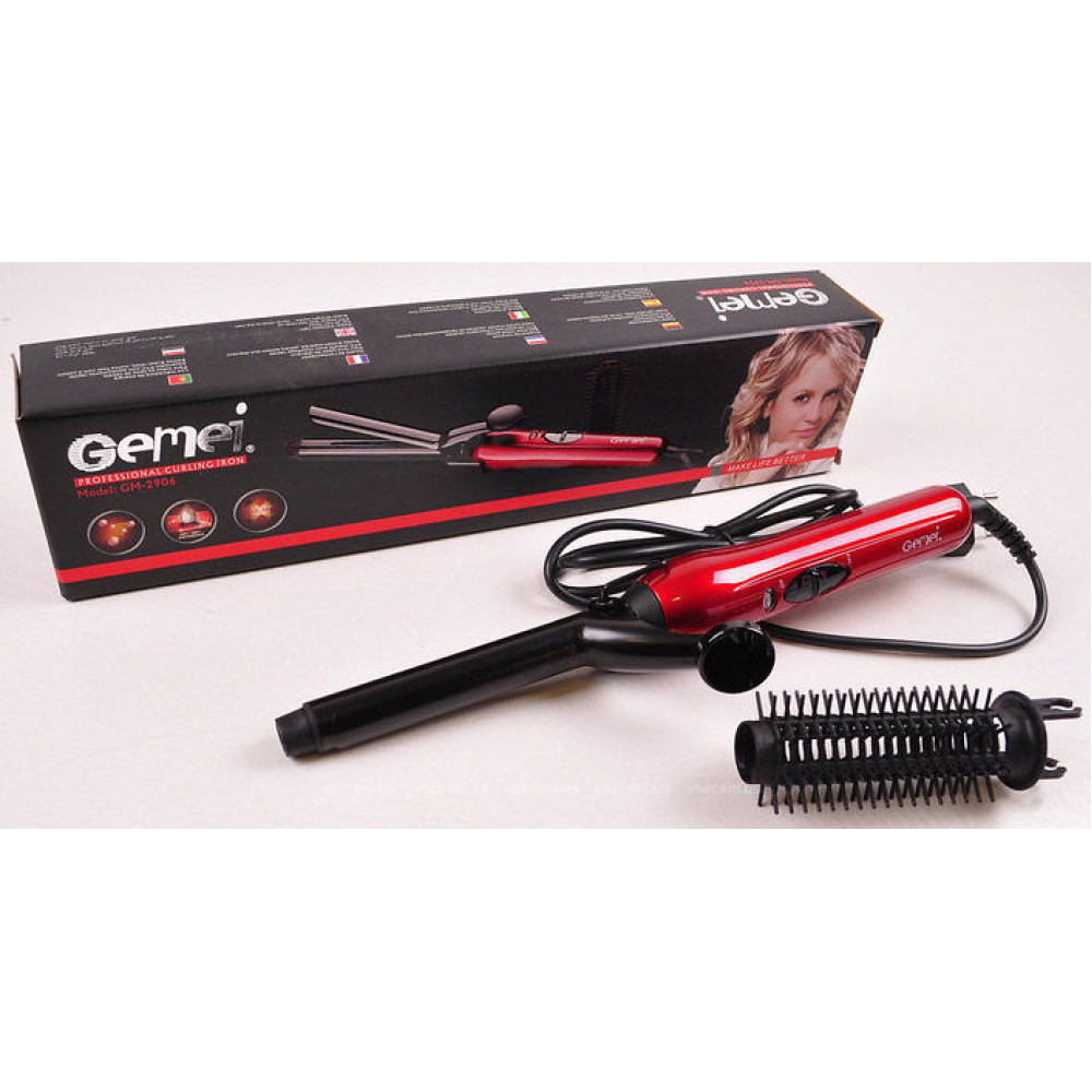 Электрощипцы для волос с насадкой щеткой имеет керамическое покрытие, обеспечивая быстрый нагрев за несколько секунд. Плойка для завивки волос GM-2906 Gemei удобная в использовании, позволяет легко и просто придать волосам желаемый вид.