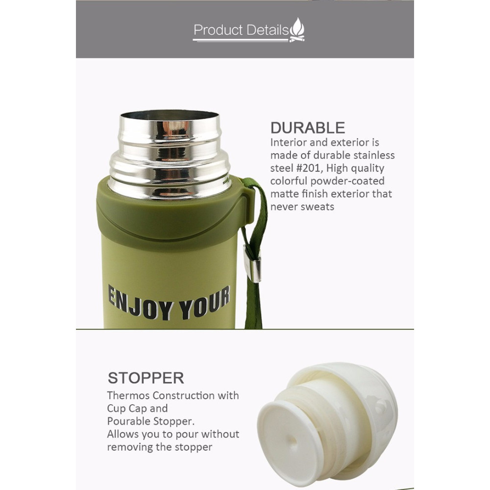 Спортивный термос разработан для длительного использования, что делает их незаменимыми в туристических походах, отдыхе на пляже и на природе, занятиях горячей йогой, игре в футбол или гольф, при занятии любыми видами спорта в спортзале или при прогулках на открытом воздухе.