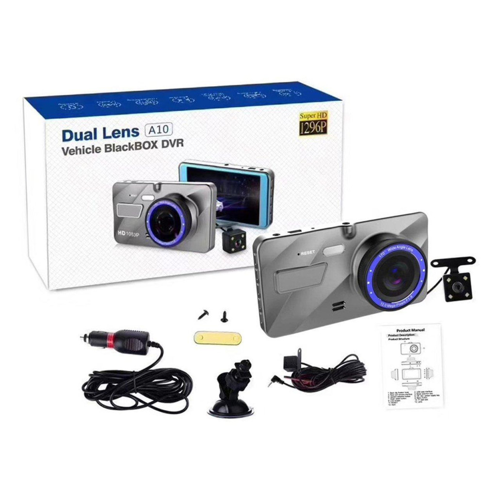 4-дюймовый яркий LCD дисплей очень удобен для просмотра записанных файлов и данных. У DVR 1080 Full HD один из самых широких углов обзора в 170°. В арсенале DVR A10 большой набор функций и опций, запись звука, датчик движения, и т.д. Видеорегистратор DVR 1080 Full HD использует карты памяти MicroSD, емкостью до 32 ГБ. В комплекте прилагается выносная камерой заднего вида.