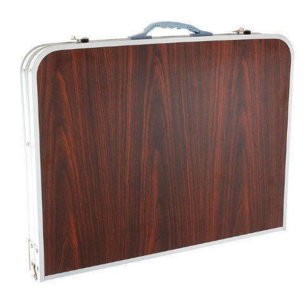 Особенностью данного раскладного стола являются выдвижные ножки, которые фиксируются специальными кнопками-защёлками В сложенном виде стол преобразуется в чемоданчик с ручкой, лёгкий и практичный, он не станет обременительным грузом и значительно облегчит Ваш отдых. Покрытие столешницы — меламин, который обладает водоотталкивающими свойствами и устойчив к разного рода механическим повреждениям: царапинам, сколам и т.д.
