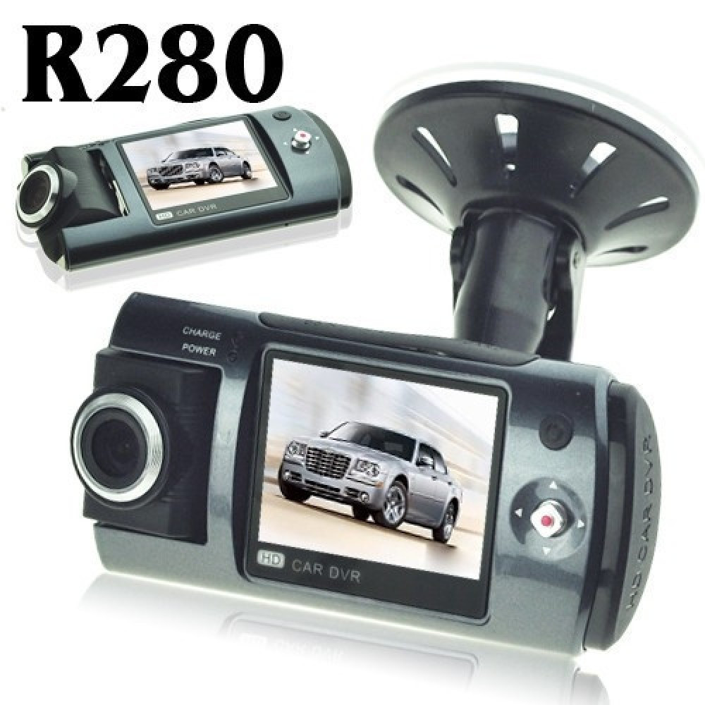 Автомобильный видеорегистратор Car DVR R280 сконструирован в форм-факторе - моноблок с встроенным ЖК дисплеем и поворотной камерой, которую можно вращать на 180 градусов.