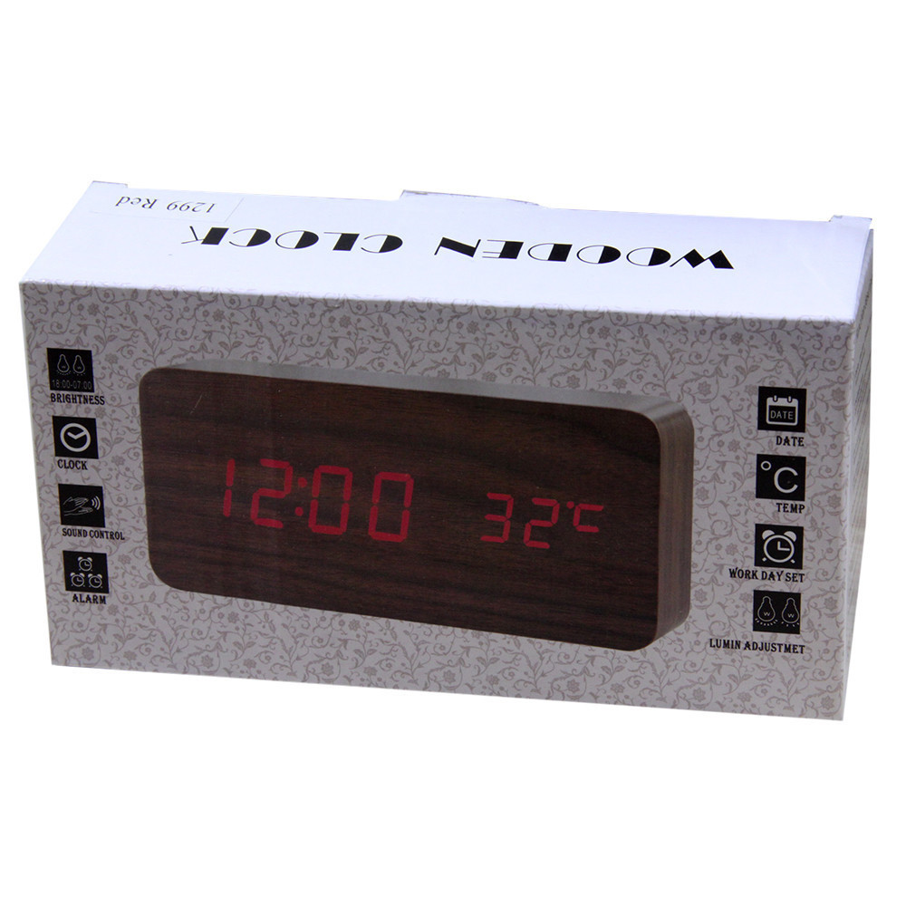 Электронные настольные часы под дерево 1299 (подсветка: красная)