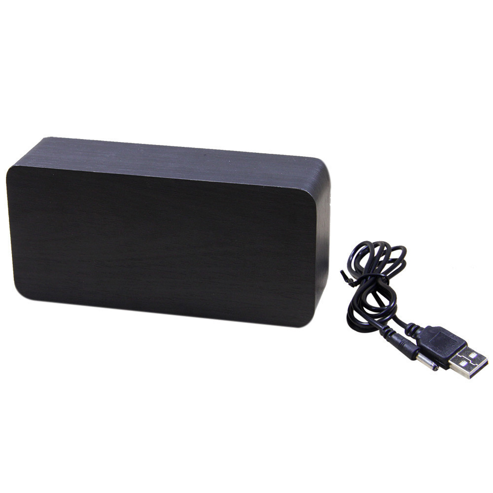 Выглядит это интригующе, но на самом деле всё просто – они покрыты очень тонким слоем шпона, через который просвечиваются светодиоды.В неактивном состоянии Wooden Clock 1299 в буквальном смысле сливается с обстановкой, но стоит хлопнуть в ладоши, как на одной из стенок проявляются время, затем дата и температура.