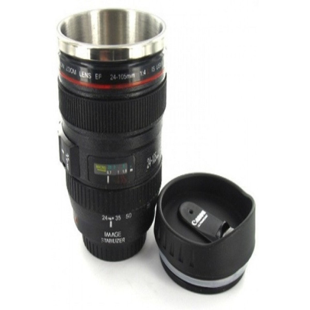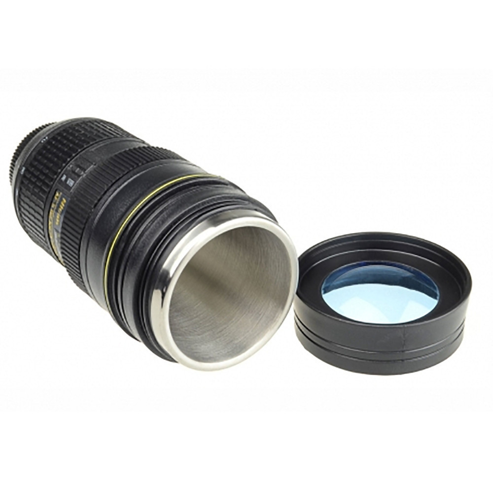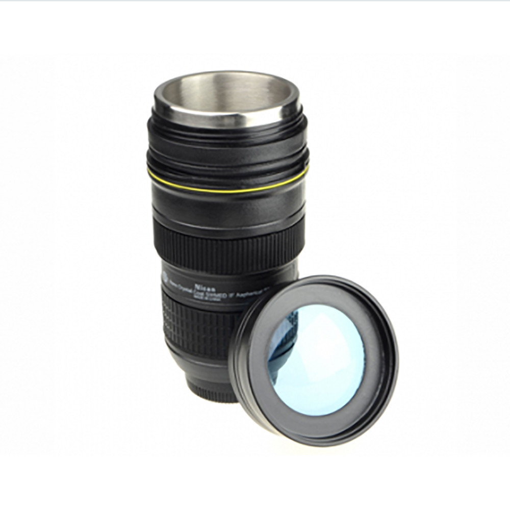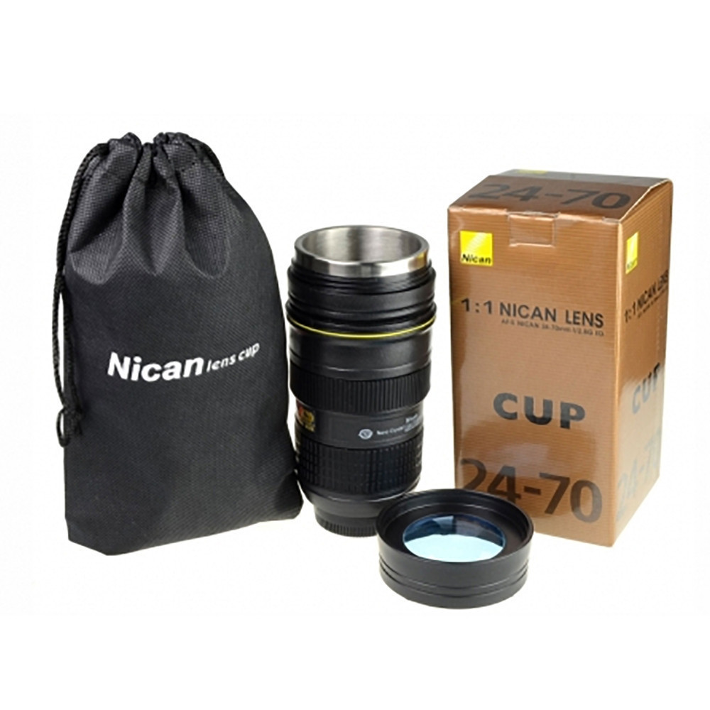 Эту новыю кружку не отличишь от настоящего объектива AF-S Nican 24-70 mm. Крышка у нее выполнена из темно-красного или голубого прозрачного пластика, совсем как передняя линза объектива.