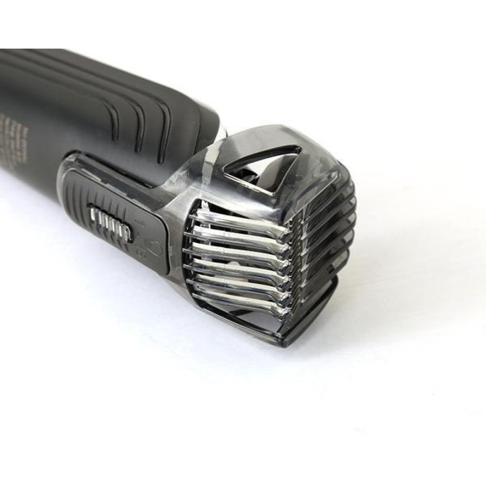 Такая насадка, как гребень для бороды, позволит ухаживать за бородой, а 18 установок по длине поддерживать ее в идеальном виде. Лезвия прибора выполнены из хромированной шлифованной стали с закругленными кончиками. Они не травмируют кожу лица и шеи при работе. Прибором можно пользоваться в душевой, а благодаря водонепроницаемому корпусу ополаскивать его под краном.