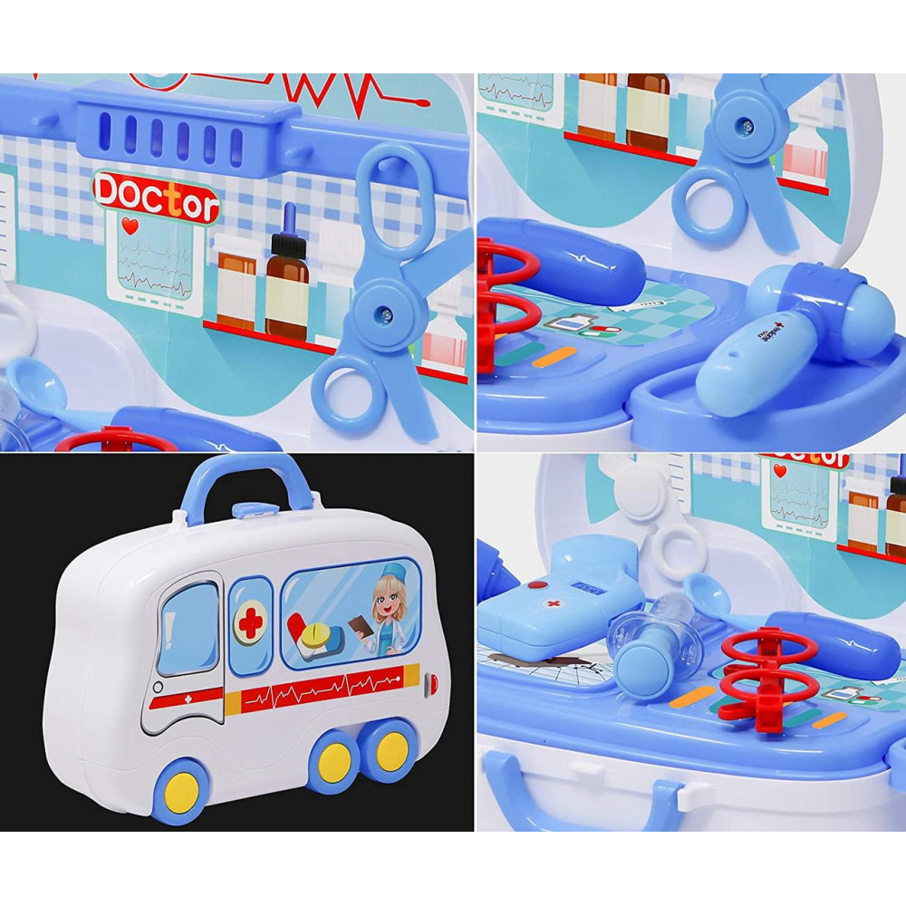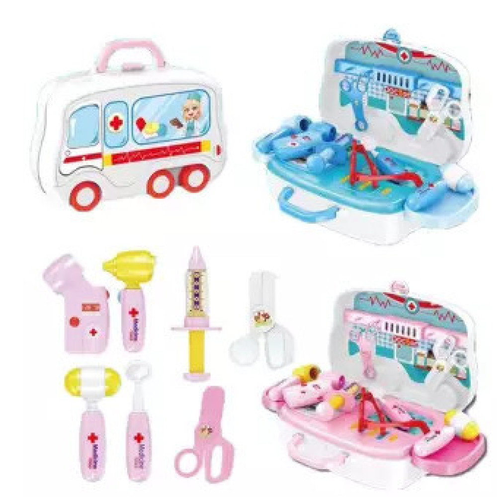С таким набором малыш почувствует себя настоящим доктором и устроит поликлинику или больницу прямо у себя дома! Друзья или любимые игрушки станут пациентами с разнообразными придуманными диагнозами. В чемоданчике-машинке удобно складывать все аксессуары, хранить дома и брать с собой в гости или в поездки.
