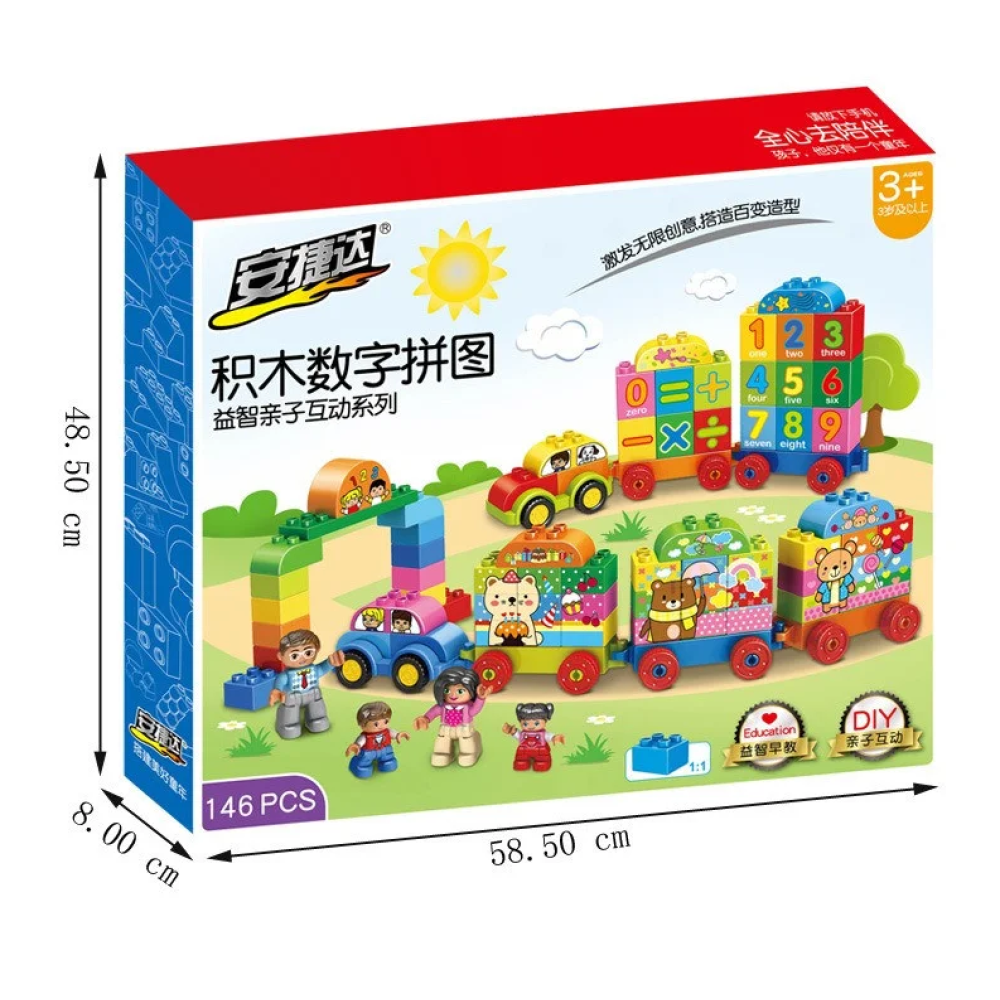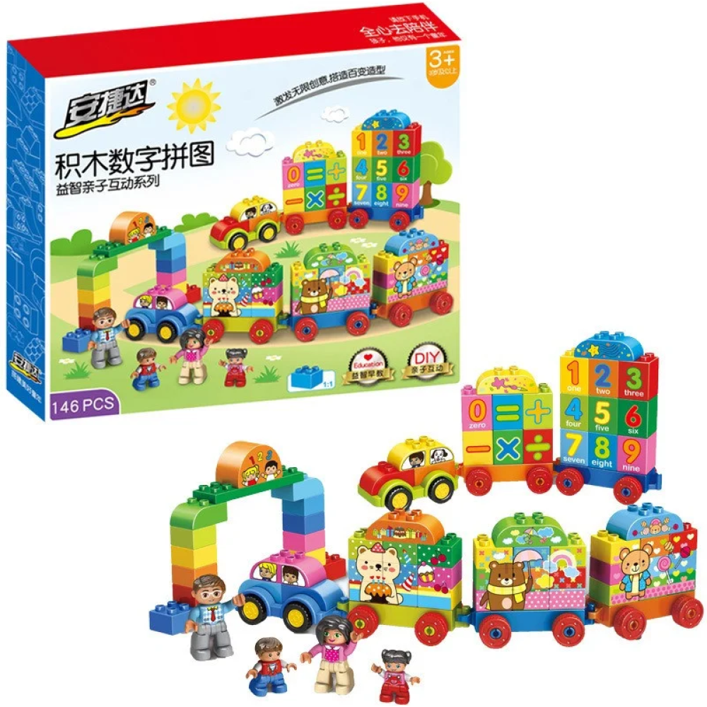 Набор на 146 деталей, с помощью которых легко изучать цифры, основы арифметики и просто возить в паровозе "друзей".