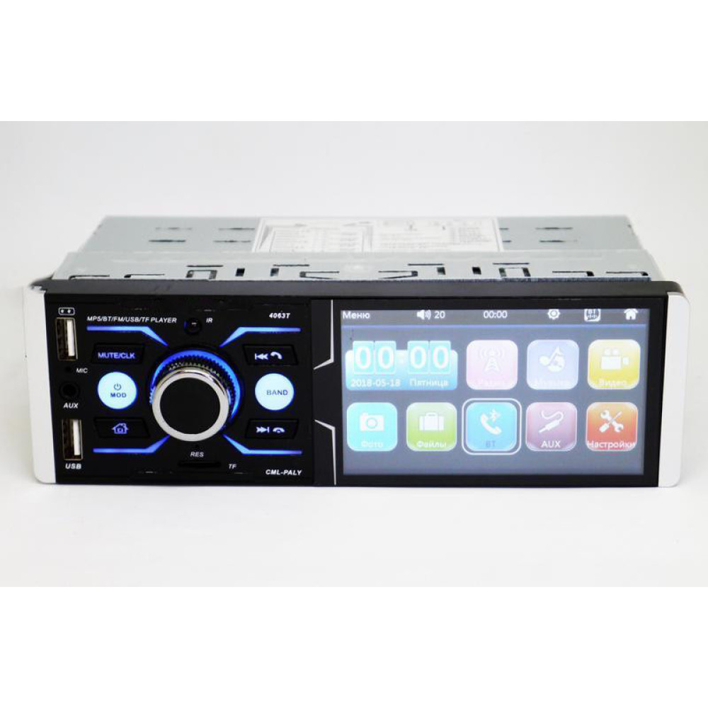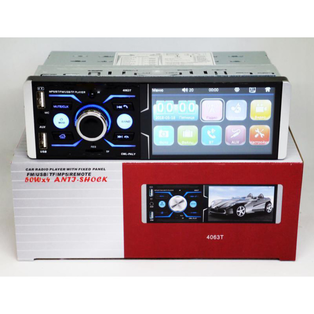 Автомагнитола 4063T – копия магнитолы Pioneer с дисплеем 4.1" дюйма для просмотра видео в формате 1080P (1920x108 Pixel) и качественным экраном. Автомагнитола имеет все функции для прослушивания и просмотра качественного аудио и видео, так же в данной модели есть возможность подключения камеры заднего вида. RGB подсветка. Встроенные разъемы для 2х USB (один для флешки, а для другой для зарядки телефона) позволит воспроизводить музыкальные композиции с носителей емкостью до 32гигабайт.