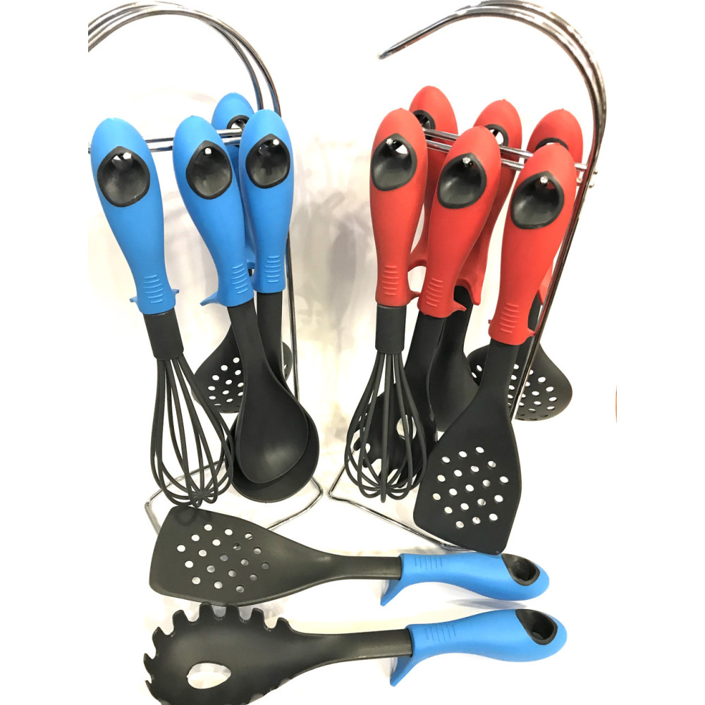 В данном наборе вы найдете: половник, ложку, шумовку, лопатку, ложку для спагетти, венчик.